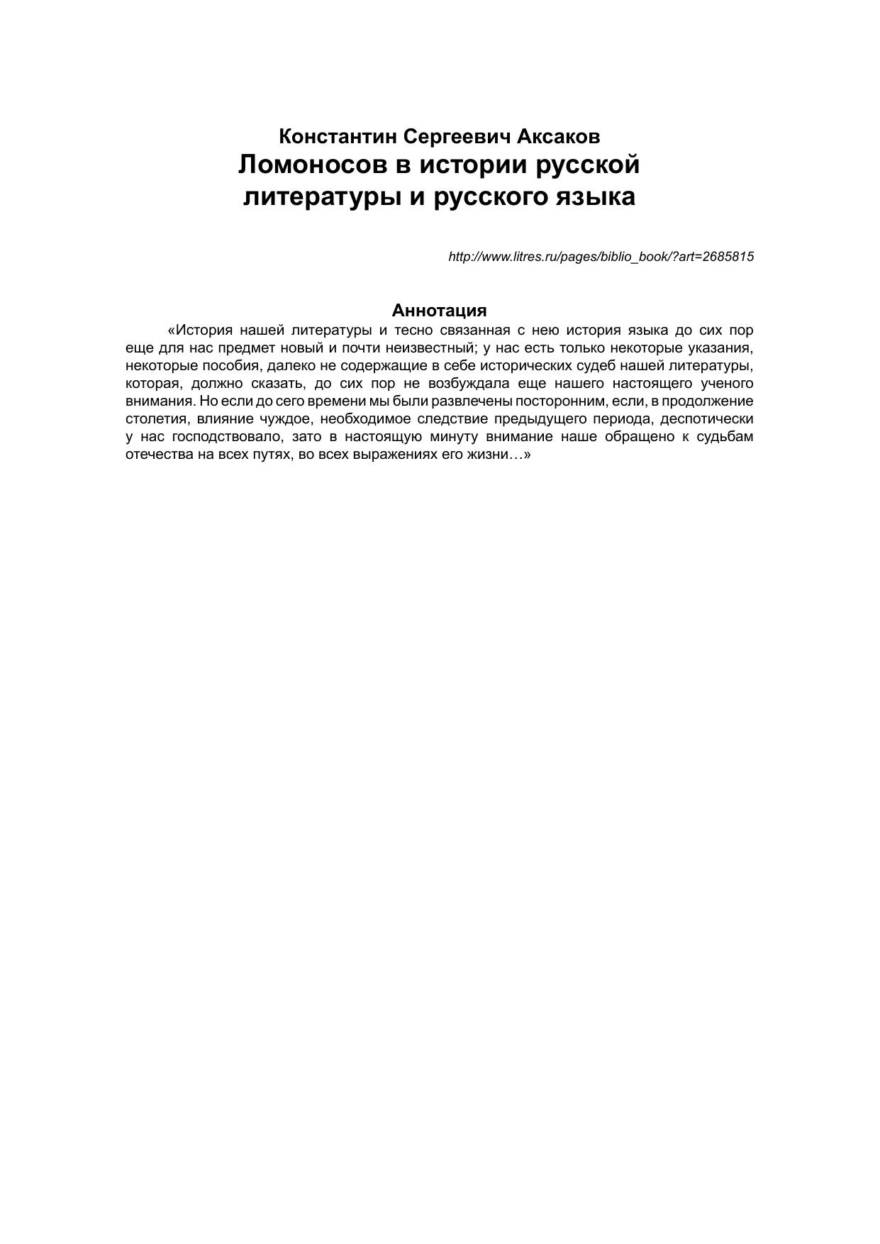 Ломоносов в истории русской литературы и русского языка