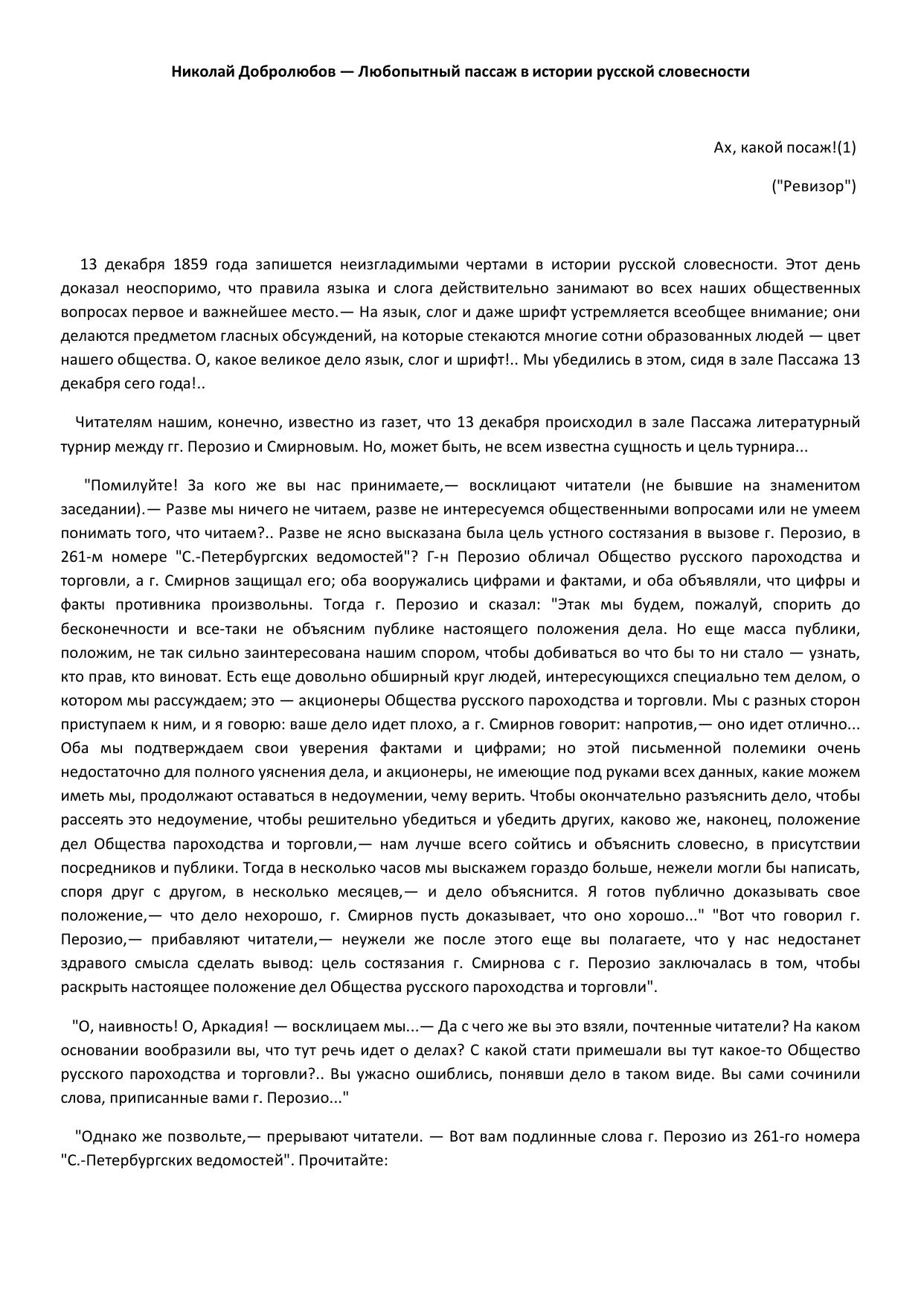 Любопытный пассаж в истории русской словесности