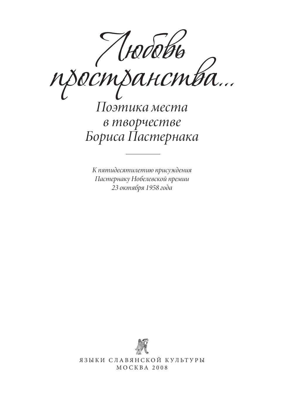 Любовь пространства…: Поэтика места в творчестве Бориса Пастернака