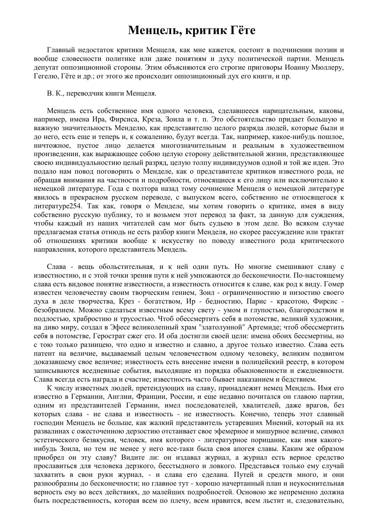 Менцель, критик Гёте