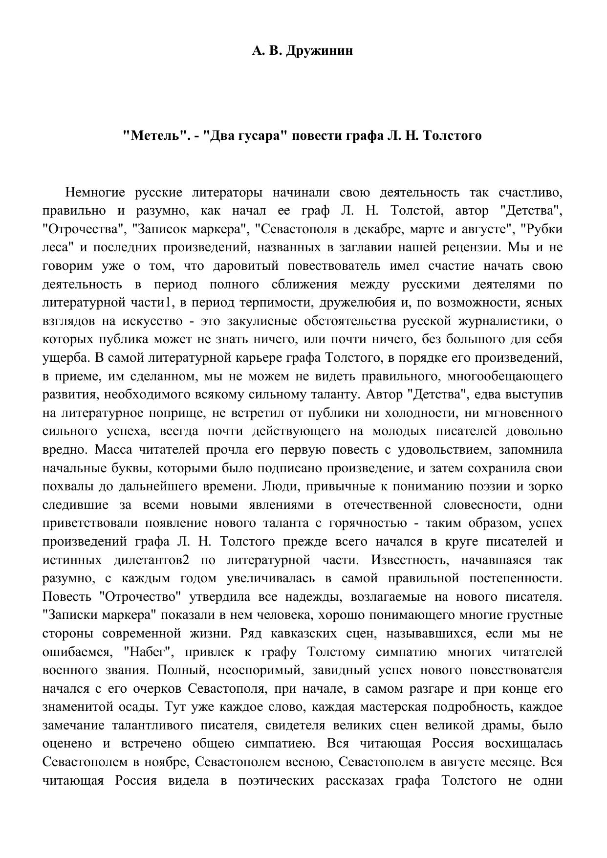 Метель. - Два гусара повести графа Л. Н. Толстого