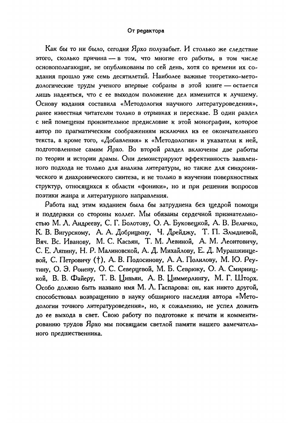 В издание входят три важнейших монографии одного из самых значительных филологов XX века. «Методология точного литературоведения», полностью публикуемая впервые, стала научным завещанием автора: в ней последовательно излагаются принципы и перспективы теоретического и исторического изучения литературы с помощью количественных методов. Две другие работы, демонстрирующие возможности заявленного подхода («Комедии и трагедии Корнеля», «Распеределение речи в пятиактной трагедии»), разрабатывают теорию жанра и теорию литературных направлений на материале европейской драмы XVII–XIX веков. Издание снабжено обширным историко-научным аппаратом, включающим очерк жизни и творчества Б. И. Ярхо, комментарии, библиографии, указатели. В приложении помещено исследование М. И. Шапира о границах «точных методов» в гуманитарных науках. Книга адресована специалистам по сравнительному литературоведению, лингвистической, исторической и теоретической поэтике, историкам театра, фольклористам, стиховедам, а также всем, кто интересуется логикой и методологией науки.