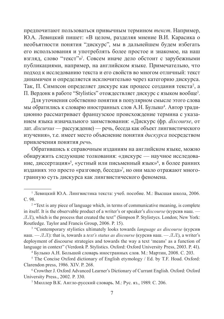 Монография посвящена вопросам интерпретации и лингвостилистического анализа художественного текста с точки зрения категорий текста и дискурса. В ней обобщаются существующие научные подходы к разработке теории дискурса и текста в отечественных и зарубежных источниках, выявляется природа дискурса и текста как лингвистических категорий, их соотношение и взаимодействие, рассматриваются принципы и приемы анализа их структуры, семантики и функций, анализируются вопросы, связанные с терминологической самостоятельностью понятия дискурс в современной филологии. Проблемы организации структуры художественного текста и методы его анализа обсуждаются через призму теории возможных миров в художественной литературе. Современные концепции текстовых пространств анализируются в сопоставлении классических теорий и в аспекте их применимости к конкретному тексту. В книге отводится особое место изучению культурных и философских предпосылок теории возможных миров вообще и текстовых миров в частности как производному явлению, способам выражения свойств времени и пространства в естественных языках, категории времени и пространства в языковой картине мира, а также историческим аспектам развития понятий «время» и «пространство» применительно к анализу художественного текста. Монография адресована преподавателям, аспирантам и студентам, обучающимся по специальностям «филология», «литературоведение», «перевод и переводоведение», а также читателям, интересующимся проблемами понимания и декодирования текстовых смыслов, вопросами интерпретации художественного текста.