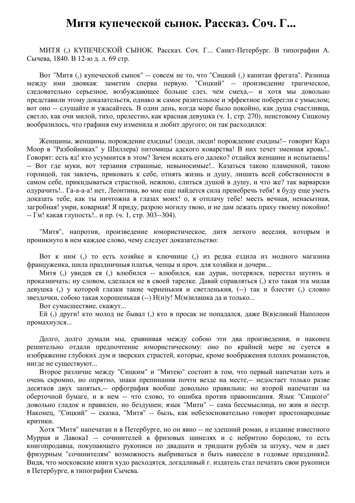 Митя, купеческой сынок. Рассказ. Соч. Г...