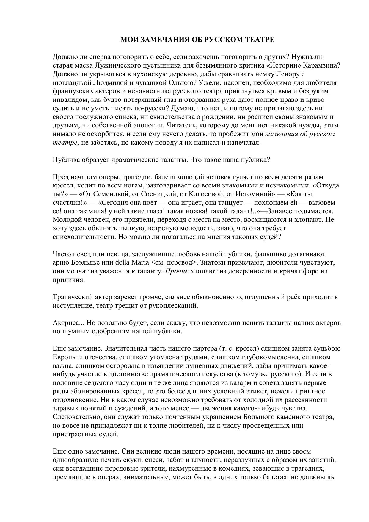 Мои замечания о русском театре