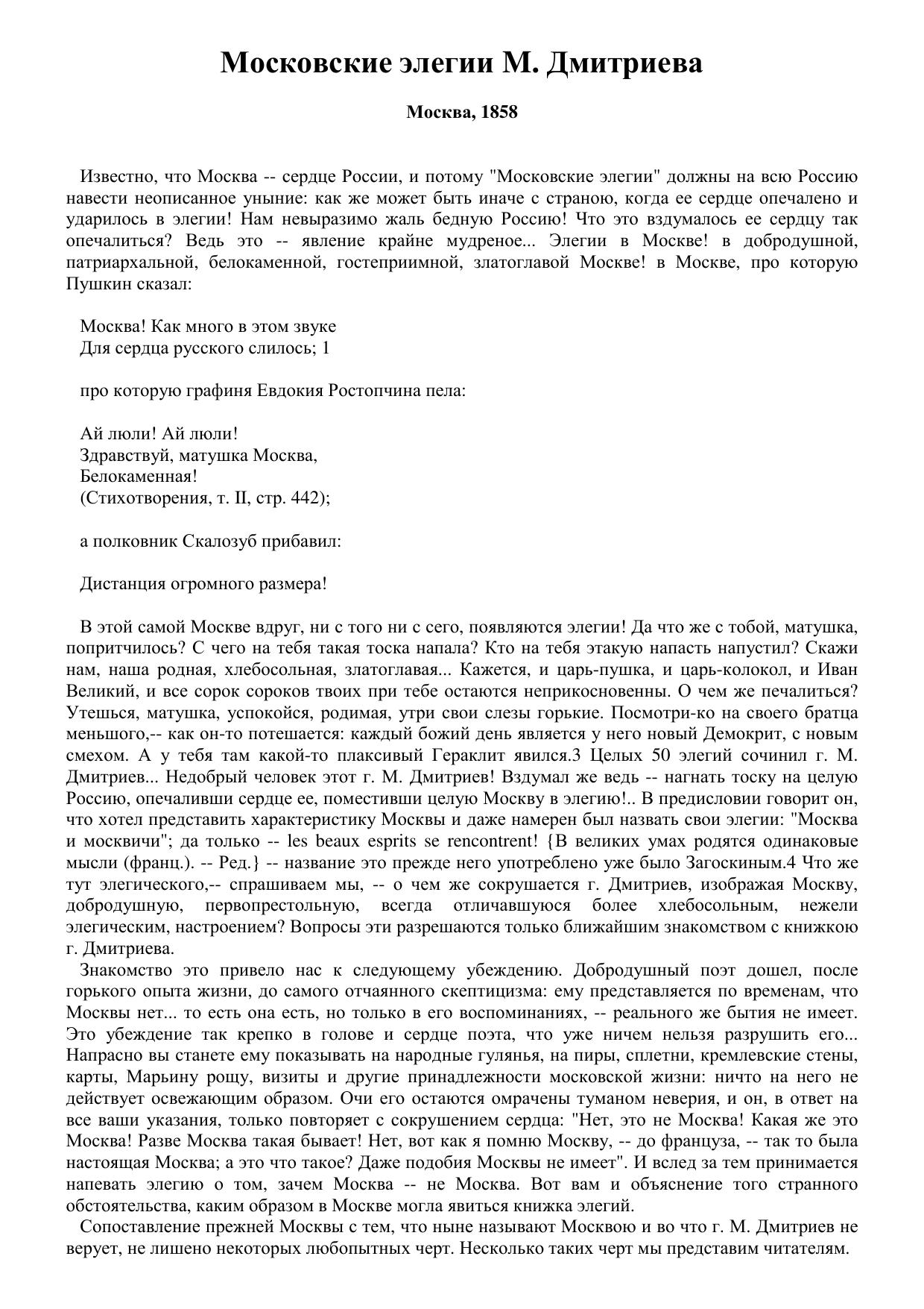 Московские элегии M. Дмитриева