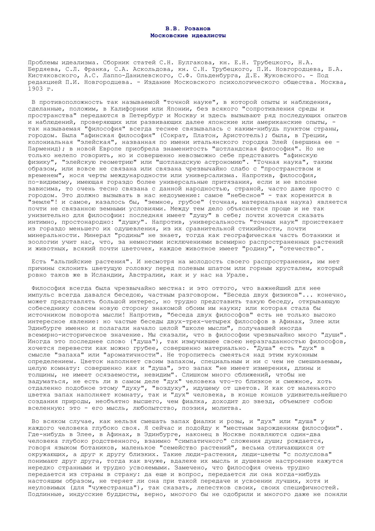 Московские идеалисты <С.Булгаков, Е.Трубецкой, Н.Бердяев, С.Франк и др.>