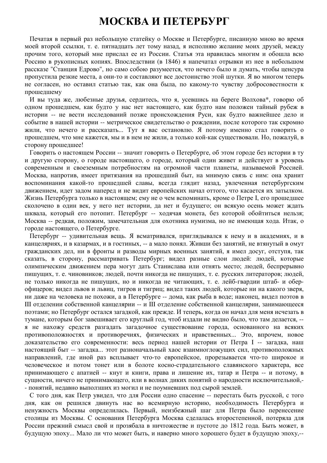 Москва и Петербург