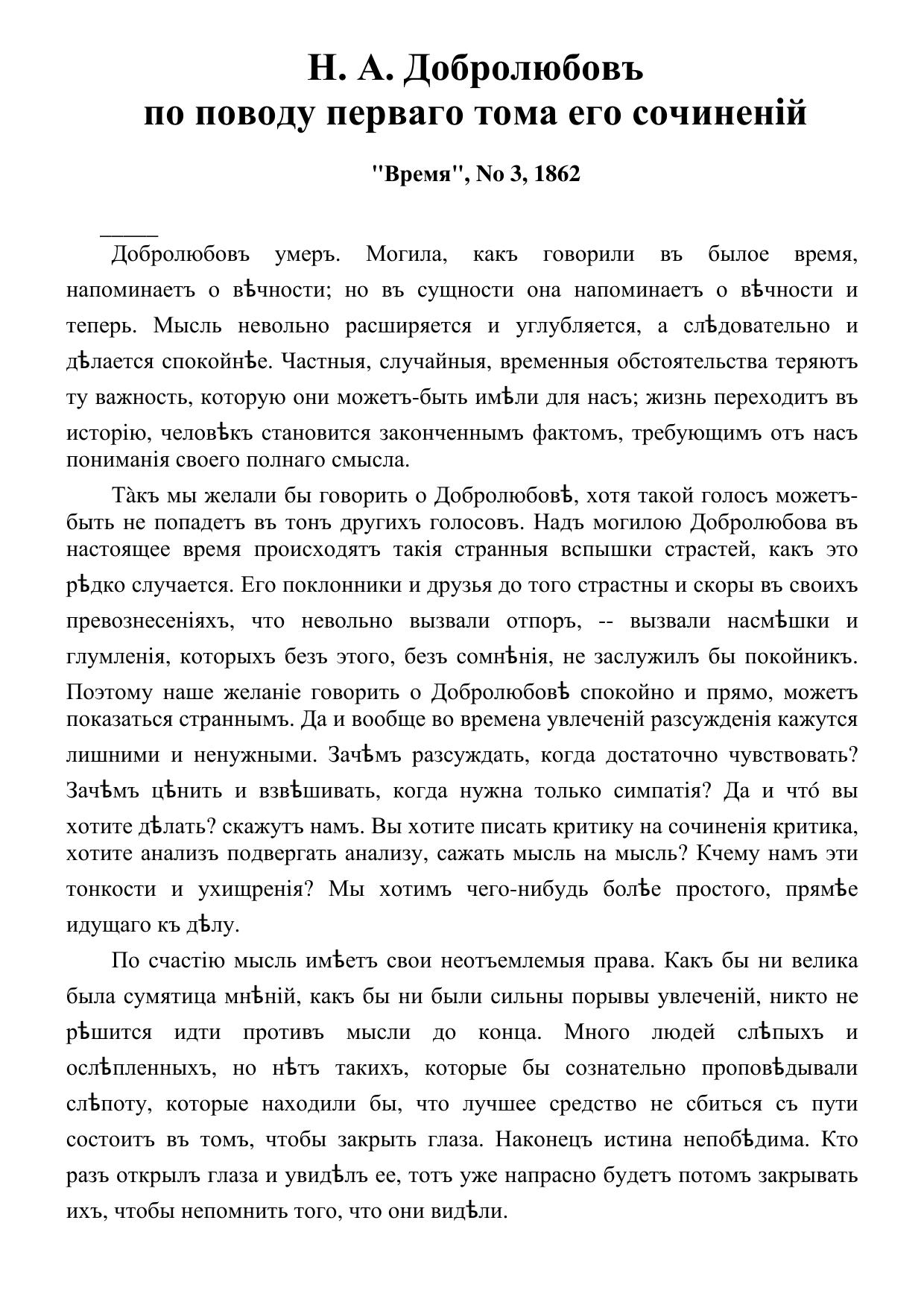 Н. А. Добролюбов. По поводу первого тома его сочинений