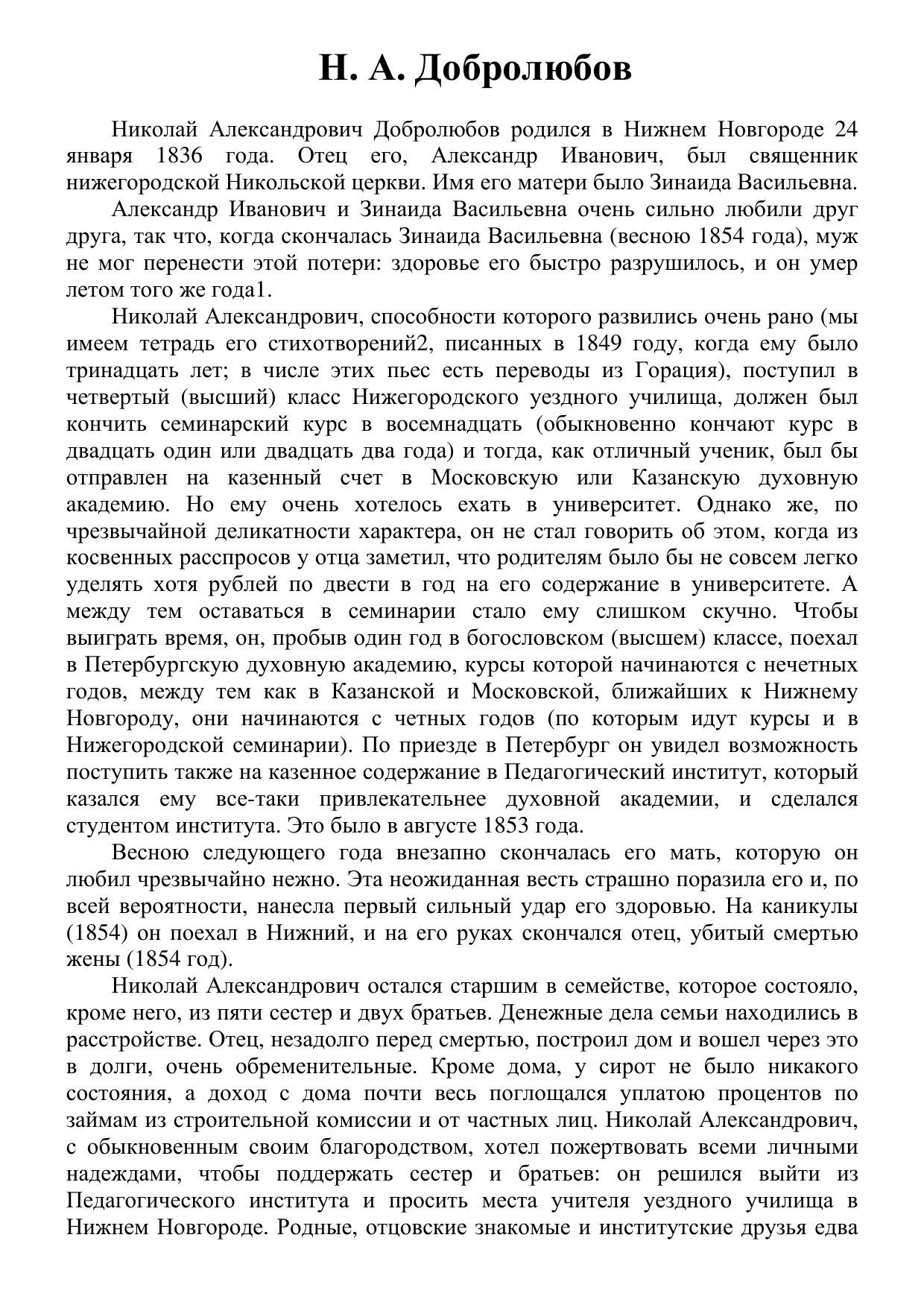 Н. А. Добролюбов. Некролог