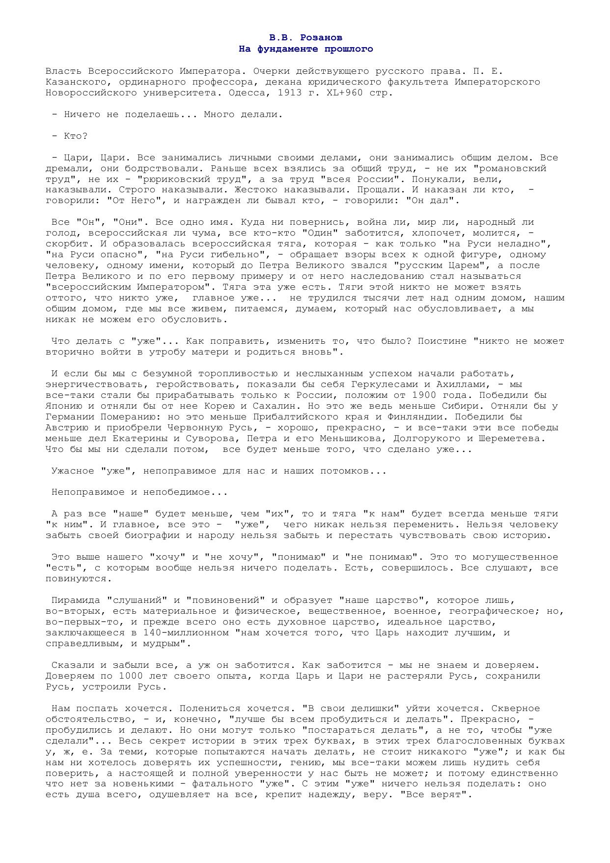 На фундаменте прошлого.[Рецензия на книгу П.Е.Казанского "Власть всероссийского императора"]