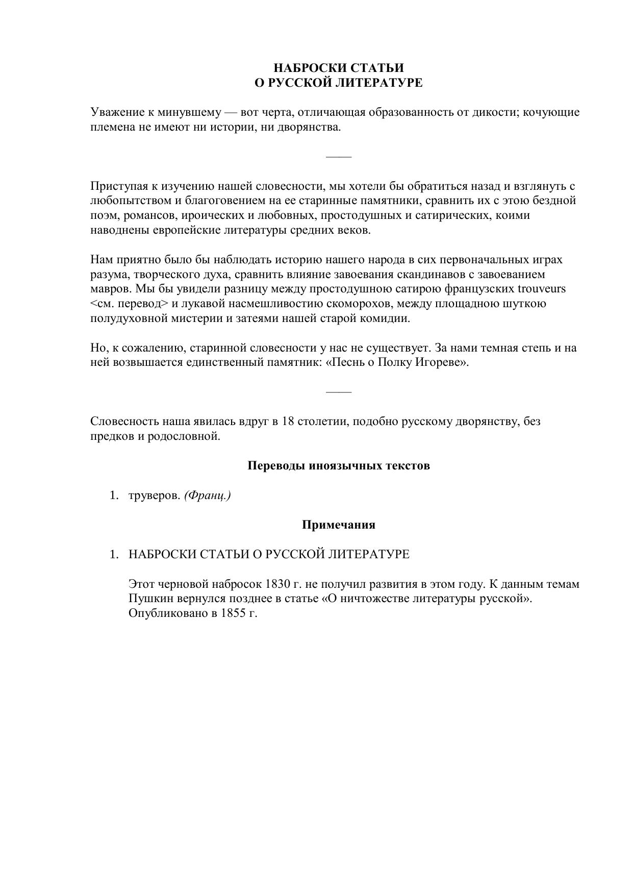 Наброски статьи о русской литературе