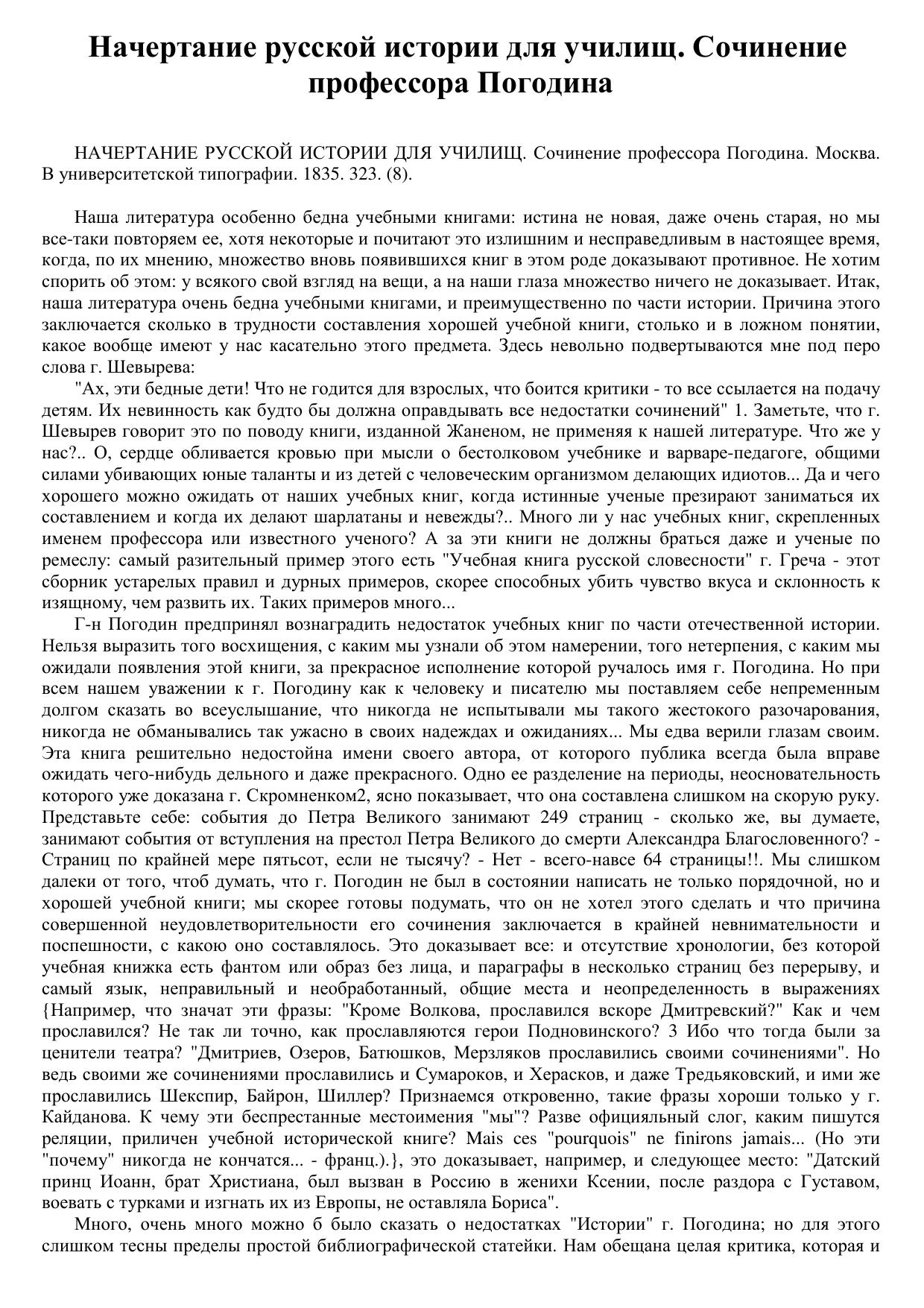Начертание русской истории для училищ. Сочинение профессора Погодина