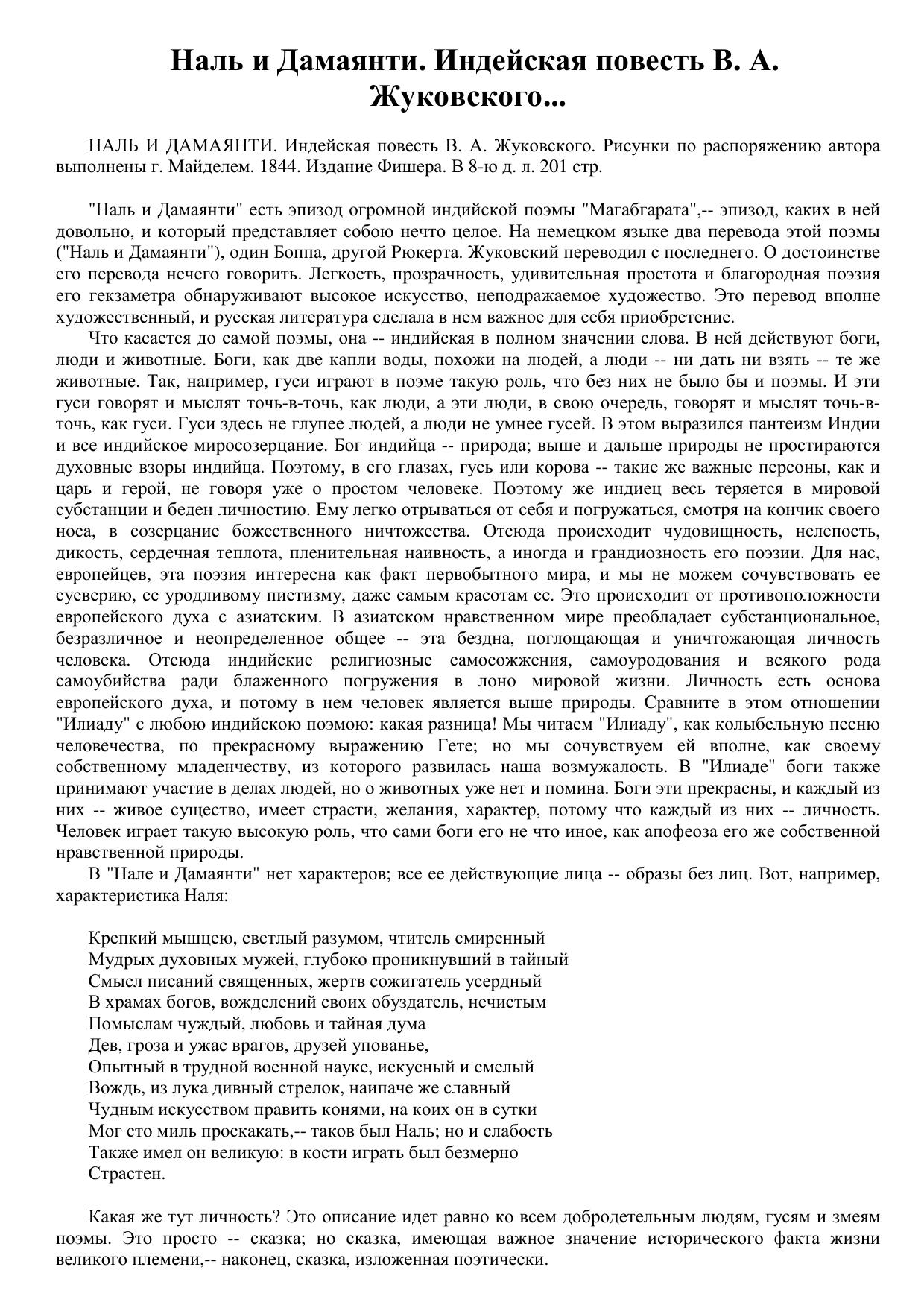 Наль и Дамаянти. Индейская повесть В. А. Жуковского
