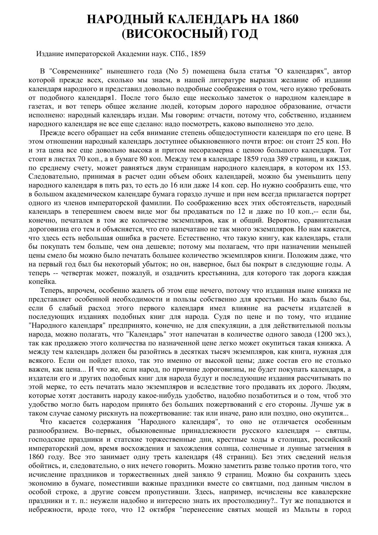 Народный календарь на 1860 (високосный) год