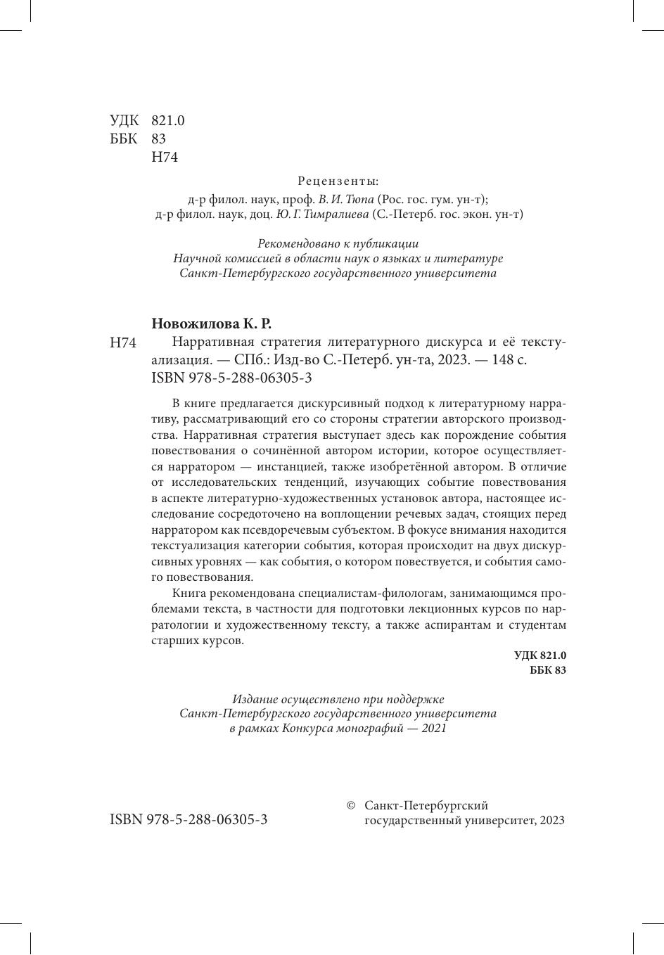 В книге предлагается дискурсивный подход к литературному нарративу, рассматривающий его со стороны стратегии авторского производства. Нарративная стратегия выступает здесь как порождение события повествования о сочиненной автором истории, которое осуществляется нарратором - инстанцией, также изобретенной автором. В отличие от исследовательских тенденций, изучающих событие повествования в аспекте литературно-художественных установок автора, настоящее исследование сосредоточено на воплощении речевых задач, стоящих перед нарратором как псевдоречевым субъектом. В фокусе внимания находится текстуализация категории события, которая происходит на двух дискурсивных уровнях - как события, о котором повествуется, и события самого повествования. Книга рекомендована специалистам - филологам, занимающимся проблемами текста, в частности для подготовки лекционных курсов по нарратологии и художественному тексту, а также аспирантам и студентам старших курсов.