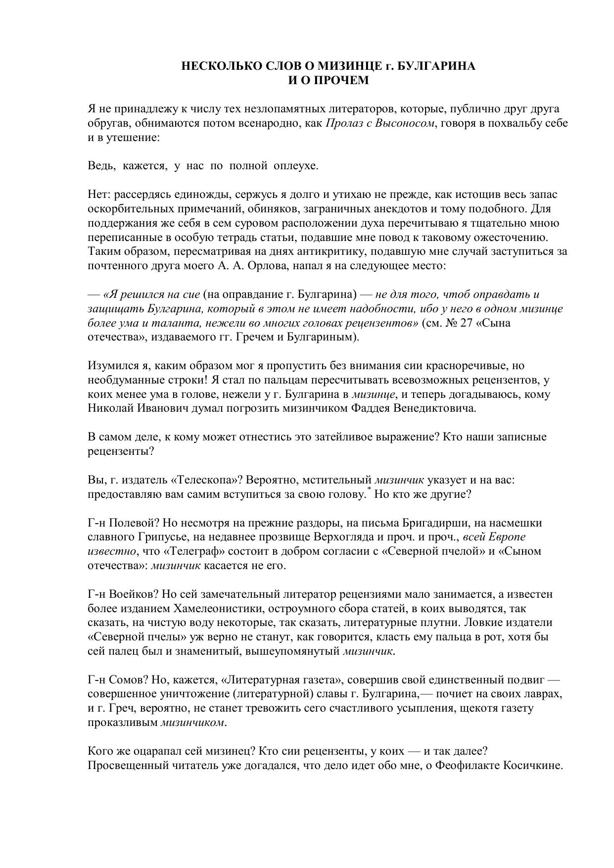 Несколько слов о мизинце г. Булгарина и о прочем