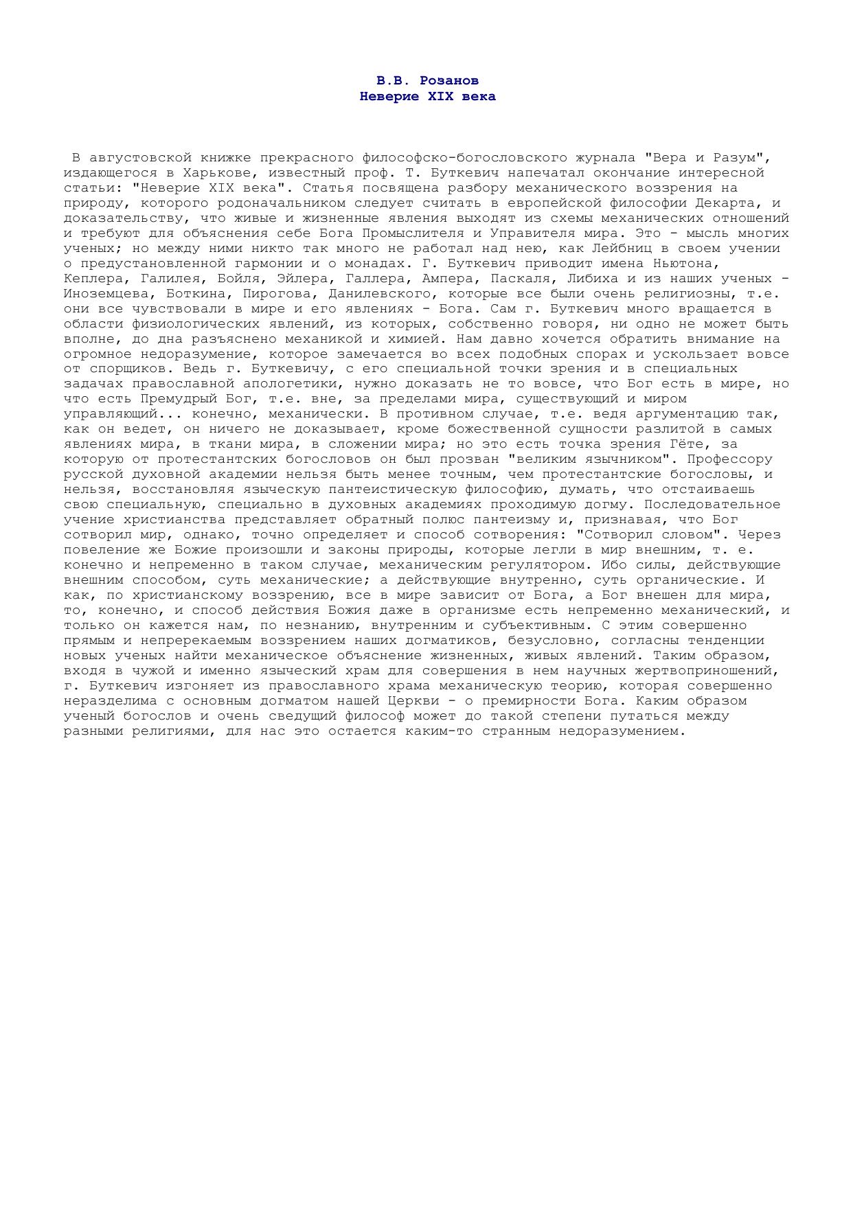 Неверие XIX века <рец.на статью Т.Буткевича "Неверие XIX века" Вера и разум, Харьков. 1899, №10-15>