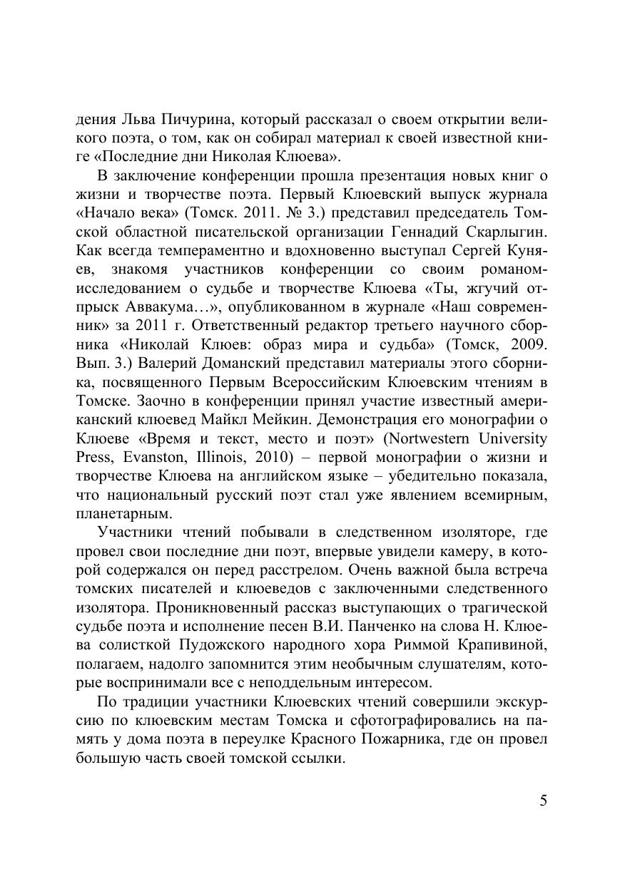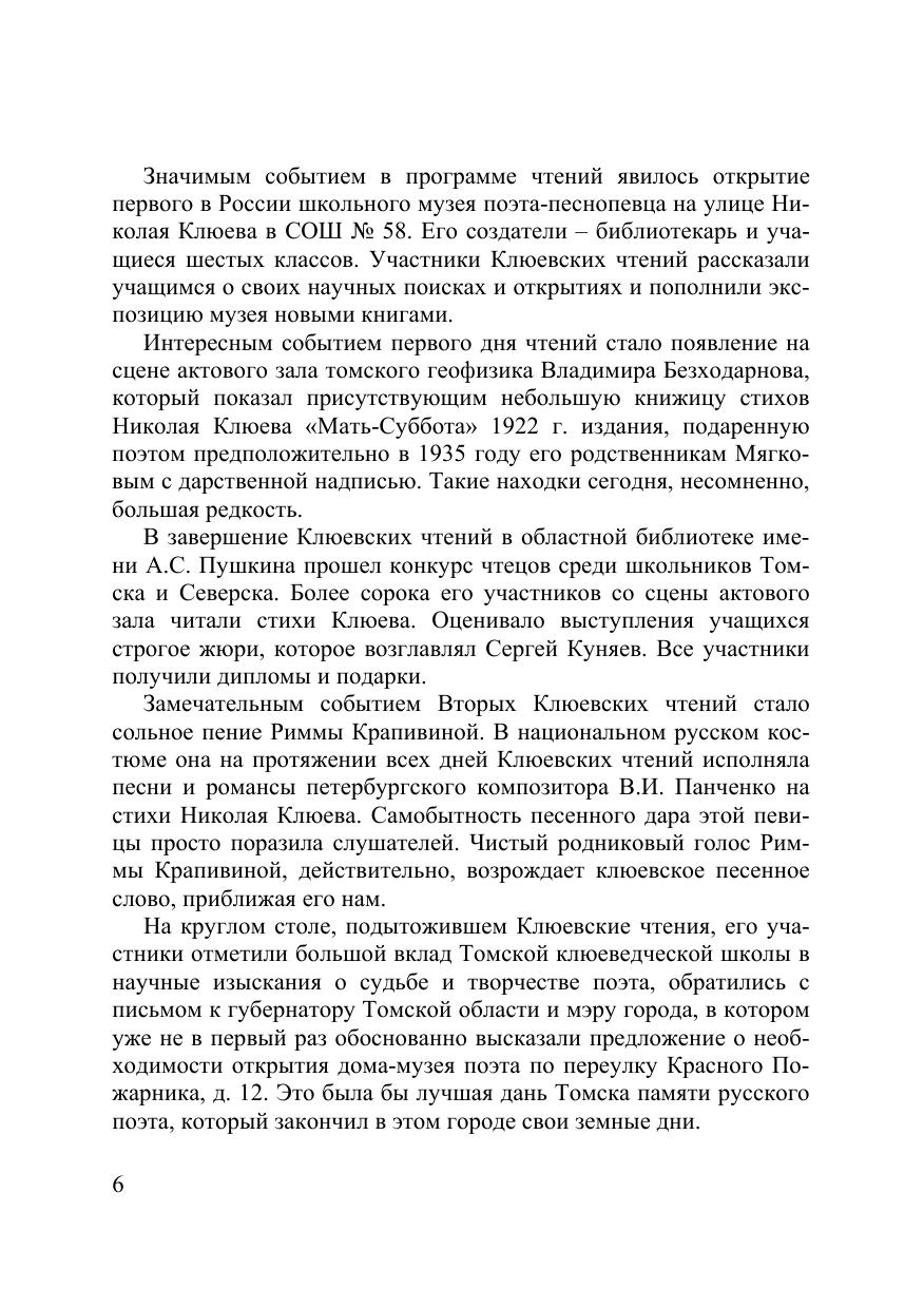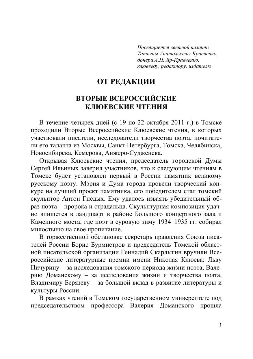 Сборник содержит материалы, посвященные литературным взаимо- связям и контексту изучения творчества Н.А. Клюева, проблемам эстети- ки, поэтики и текстологии его произведений, судьбе наследия. В книгу включены также воспоминания родных о дочери А.Н. Яр-Кравченко – Т.А. Кравченко. Отдельные статьи представлены в авторской редакции по рекоменда- ции титульного редактора В.А. Доманского. Для филологов и литературных работников, преподавателей вузов и учителей-словесников, историков и культурологов, студентов и аспи- рантов.