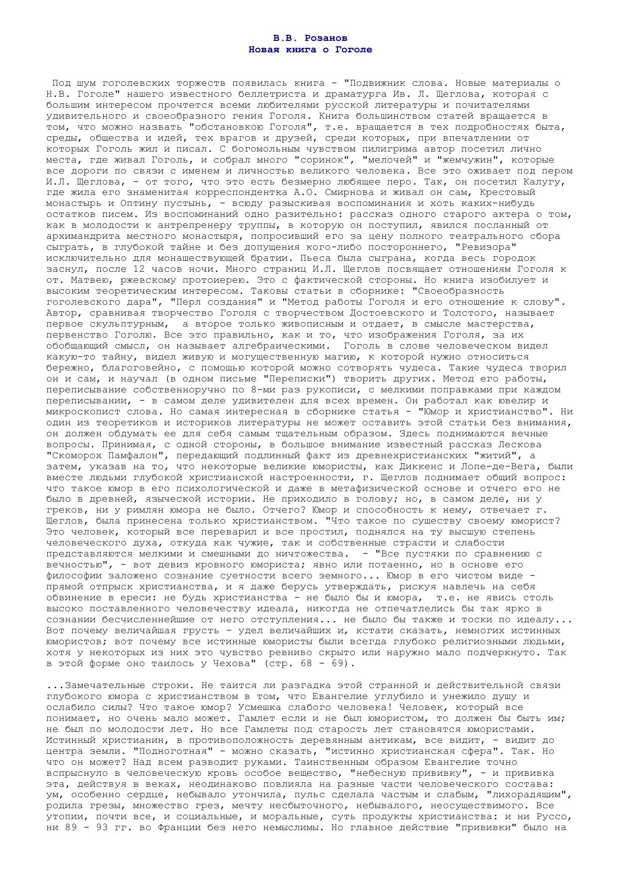 Новая книга о Гоголе <И.Щеглов. Подвижник слова>