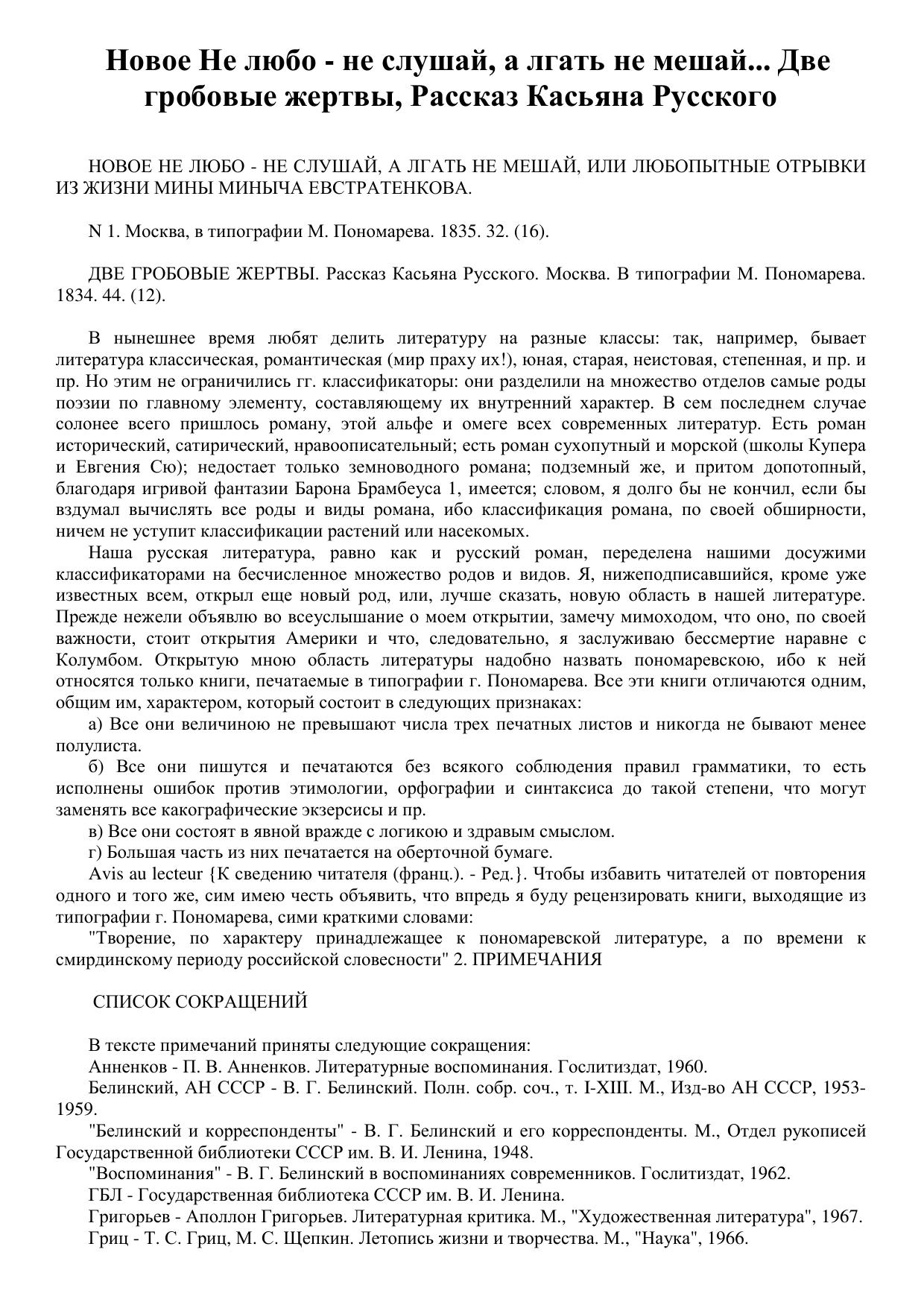 Новое Не любо - не слушай, а лгать не мешай... Две гробовые жертвы, Рассказ Касьяна Русского