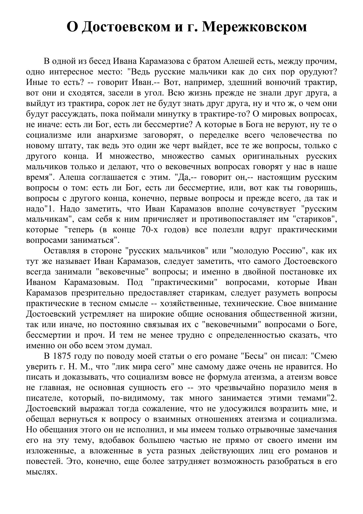 О Достоевском и г. Мережковском