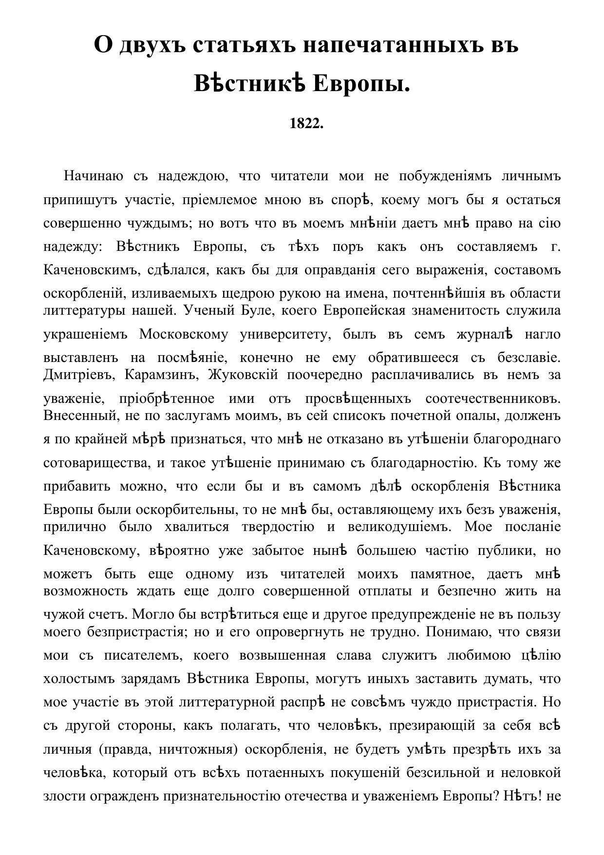 О двух статьях, напечатанных в "Вестнике Европы"