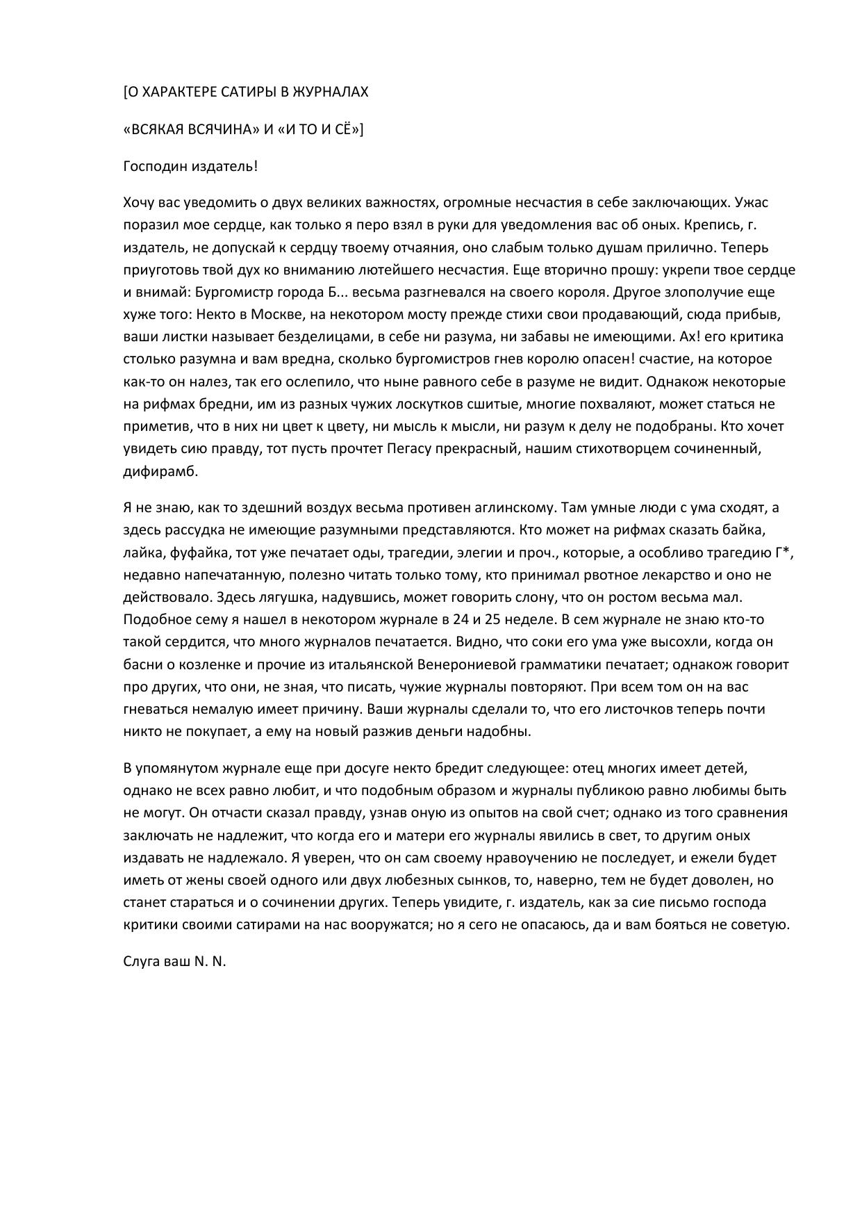 О характере сатиры в журналах «Всякая всячина» и «И то и сё»