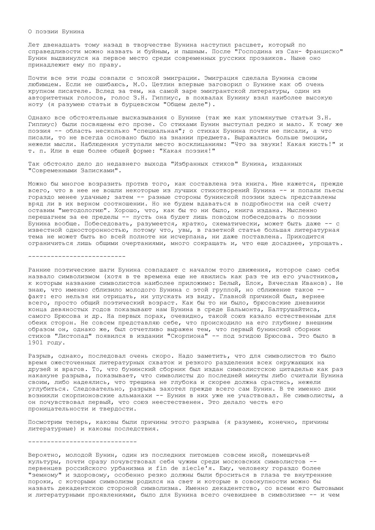О поэзии Бунина