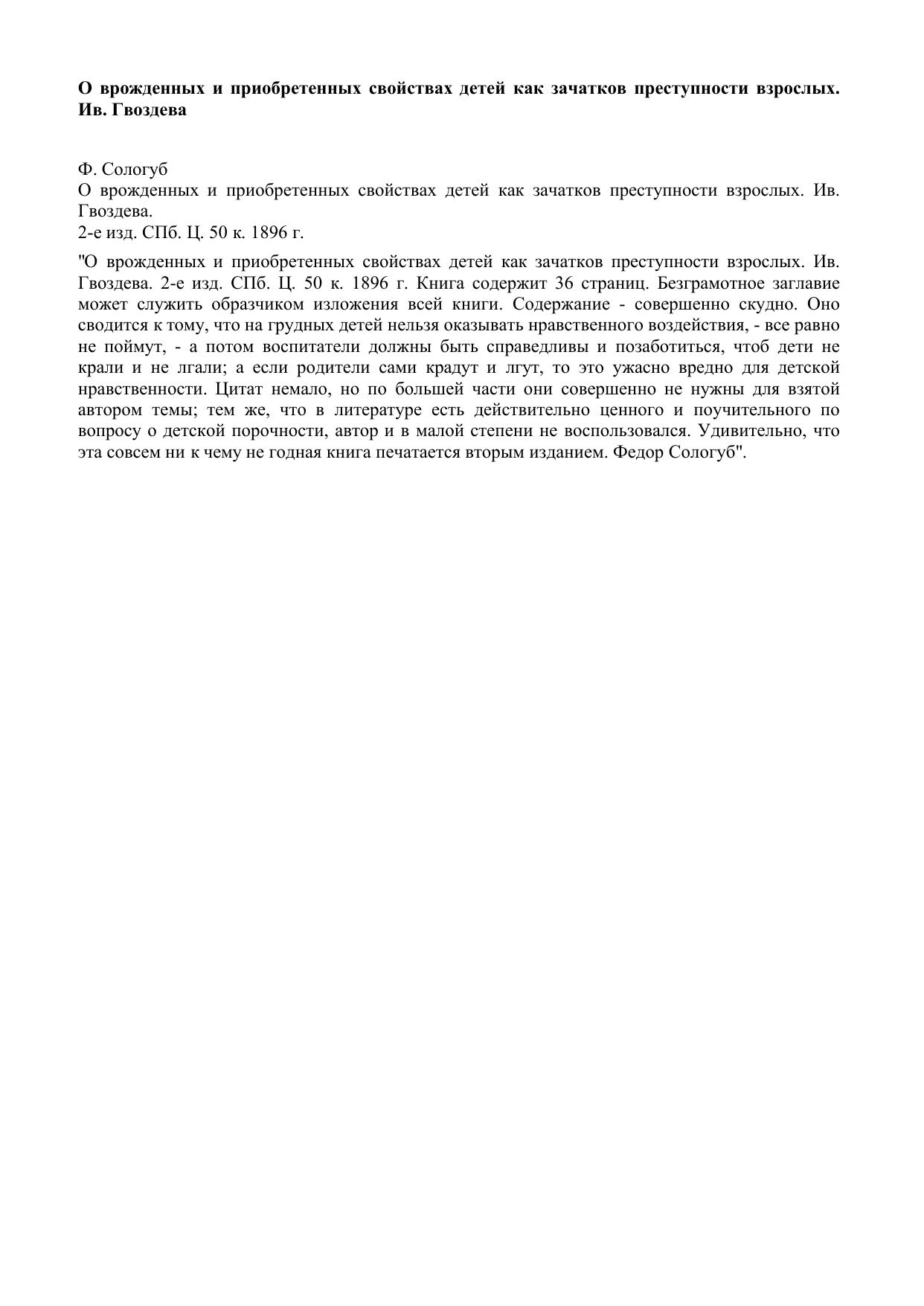 О врожденных и приобретенных свойствах детей как зачатков преступности взрослых. Ив. Гвоздева