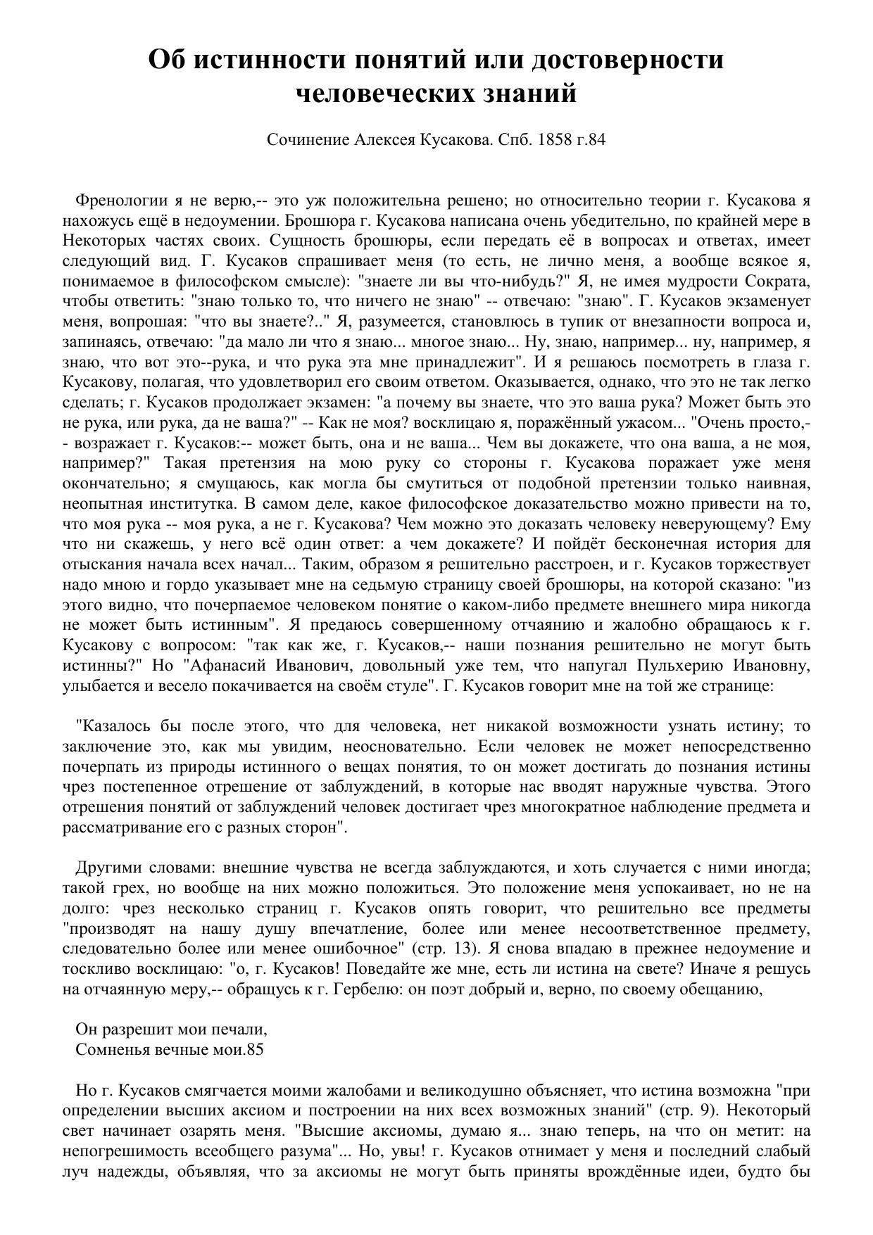 Об истинности понятий или достоверности человеческих знаний. Сочинение Алексея Кусакова