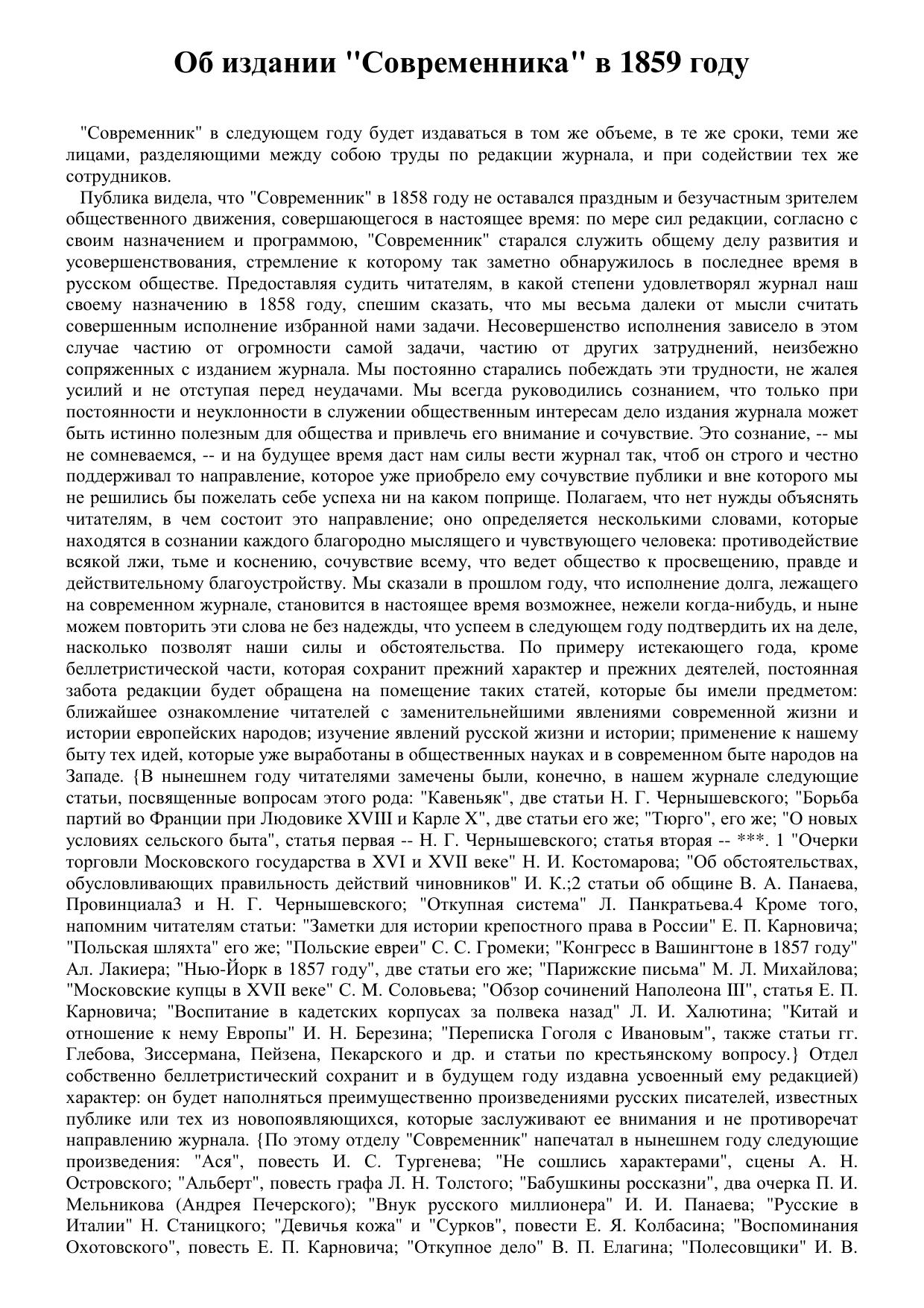 Об издании "Современника" в 1859 году