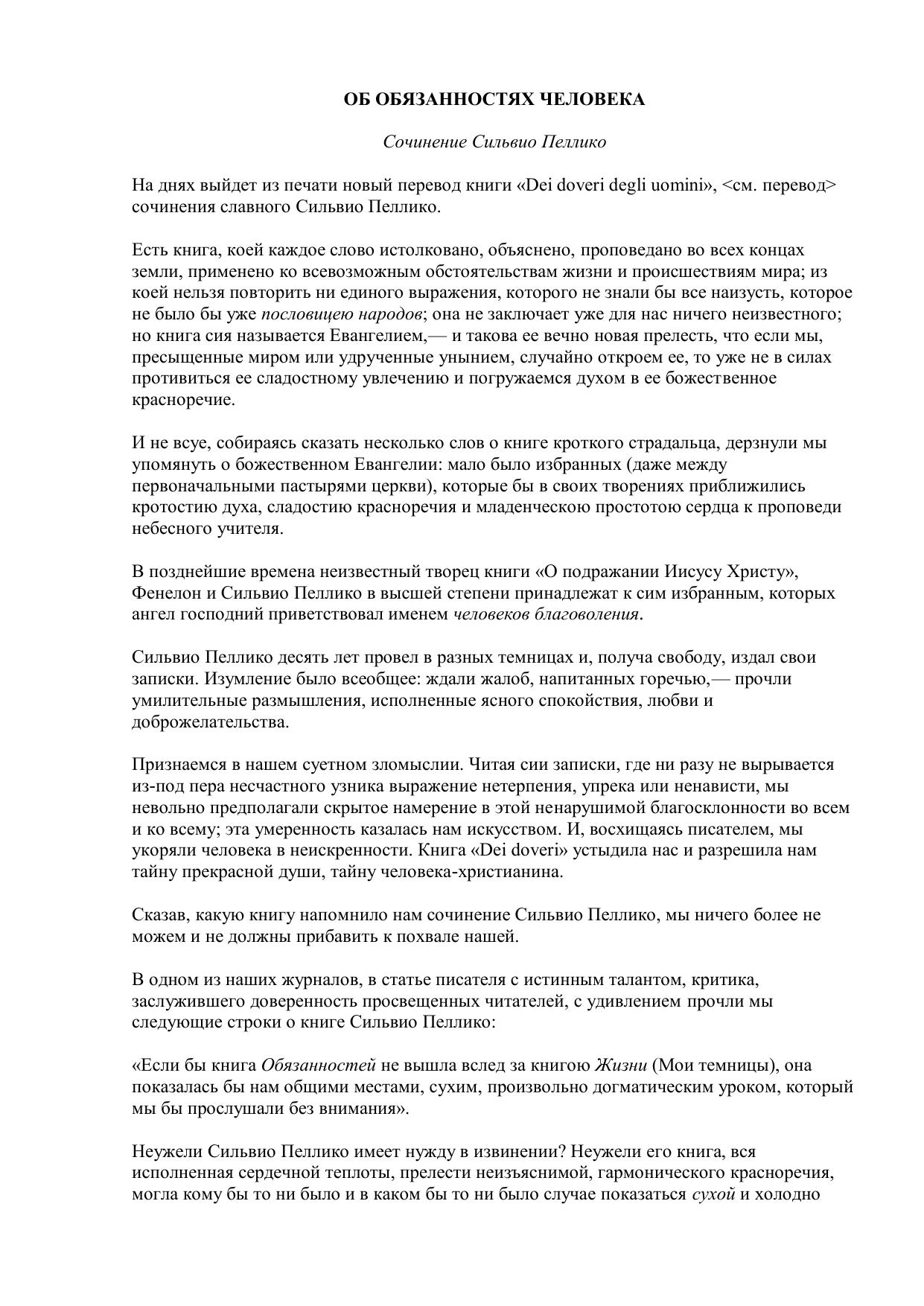Об обязанностях человека: Сочинение Сильвио Пеллико