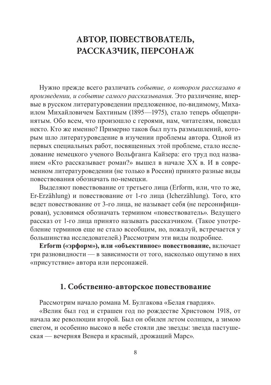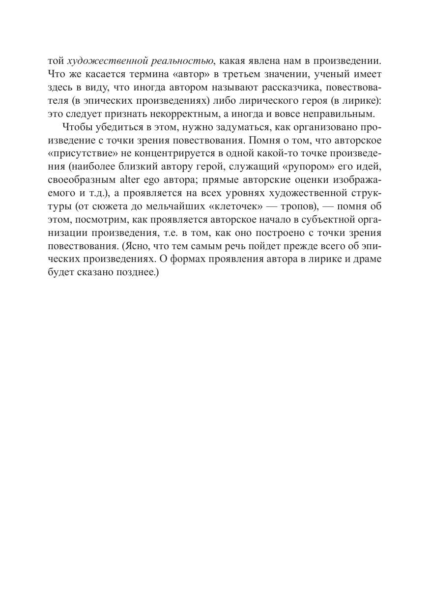 В книге разъясняются такие понятия, как образ и голос автора, повествователь и рассказчик, лирический герой. Рассматриваются разновидности повествования в эпических произведениях, особенности авторской активности в лирике и драме.