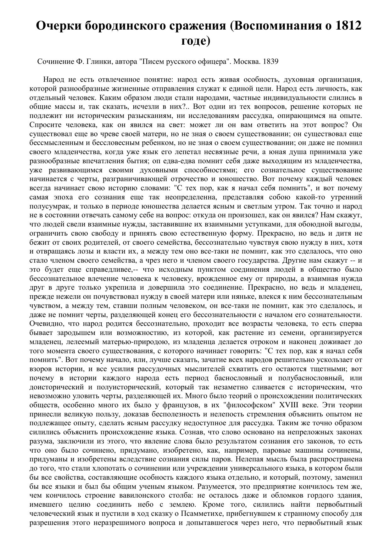 Очерки бородинского сражения (Воспоминания о 1812 годе)