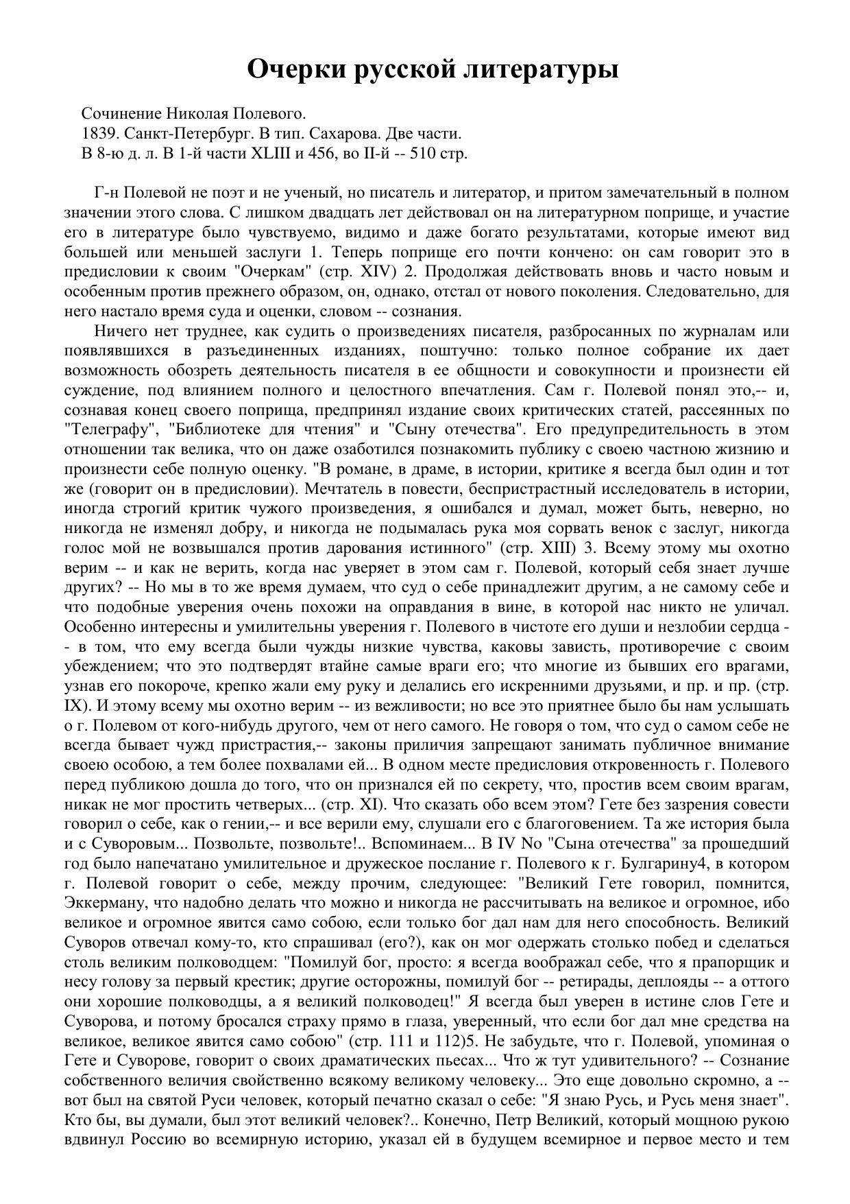 Очерки русской литературы. Сочинение Николая Полевого