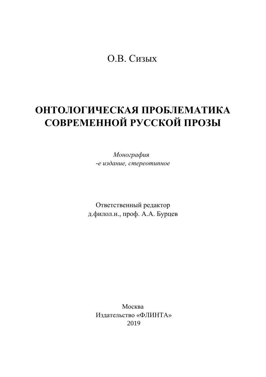 Онтологическая проблематика современной русской прозы