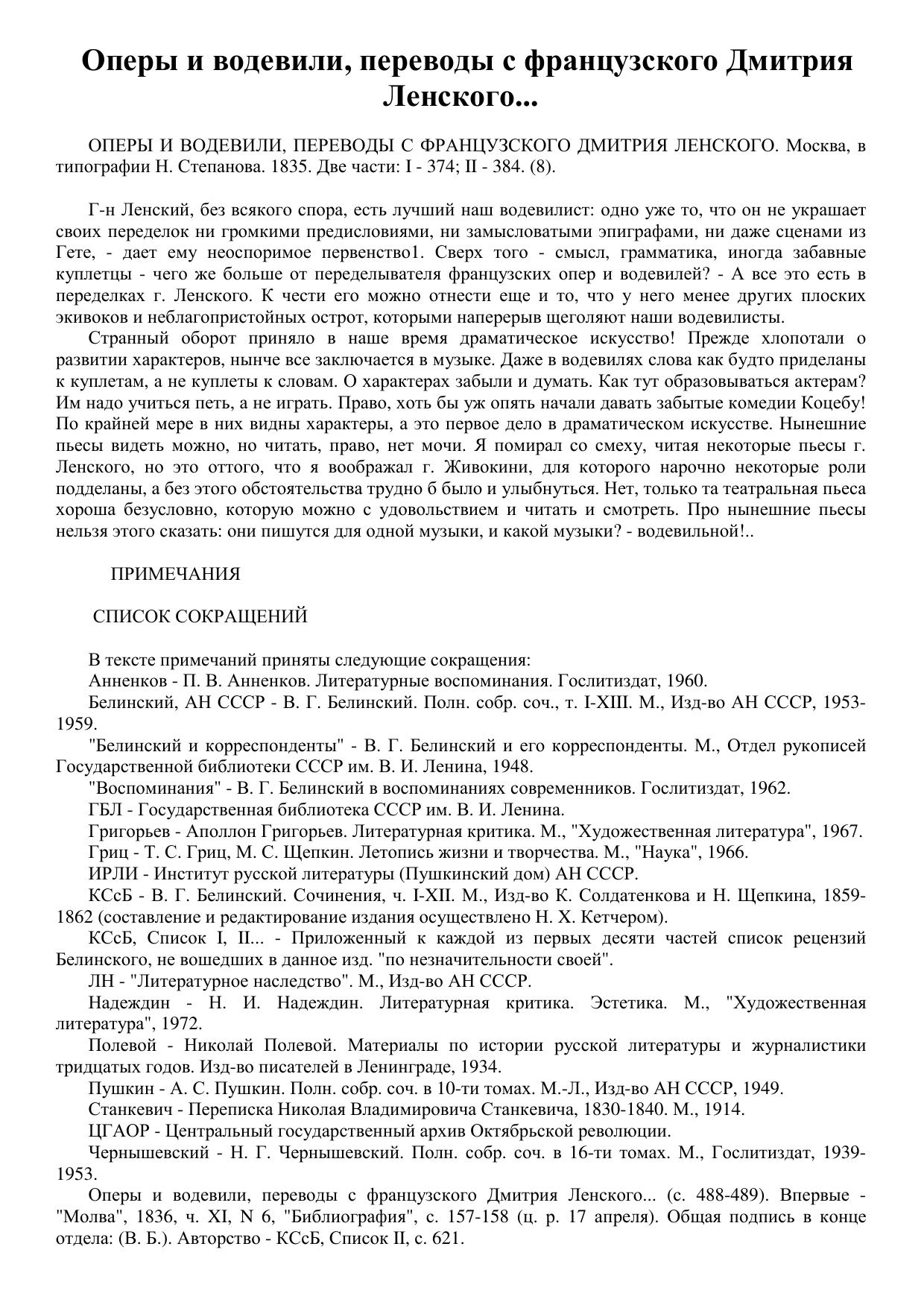 Оперы и водевили, переводы с французского Дмитрия Ленского