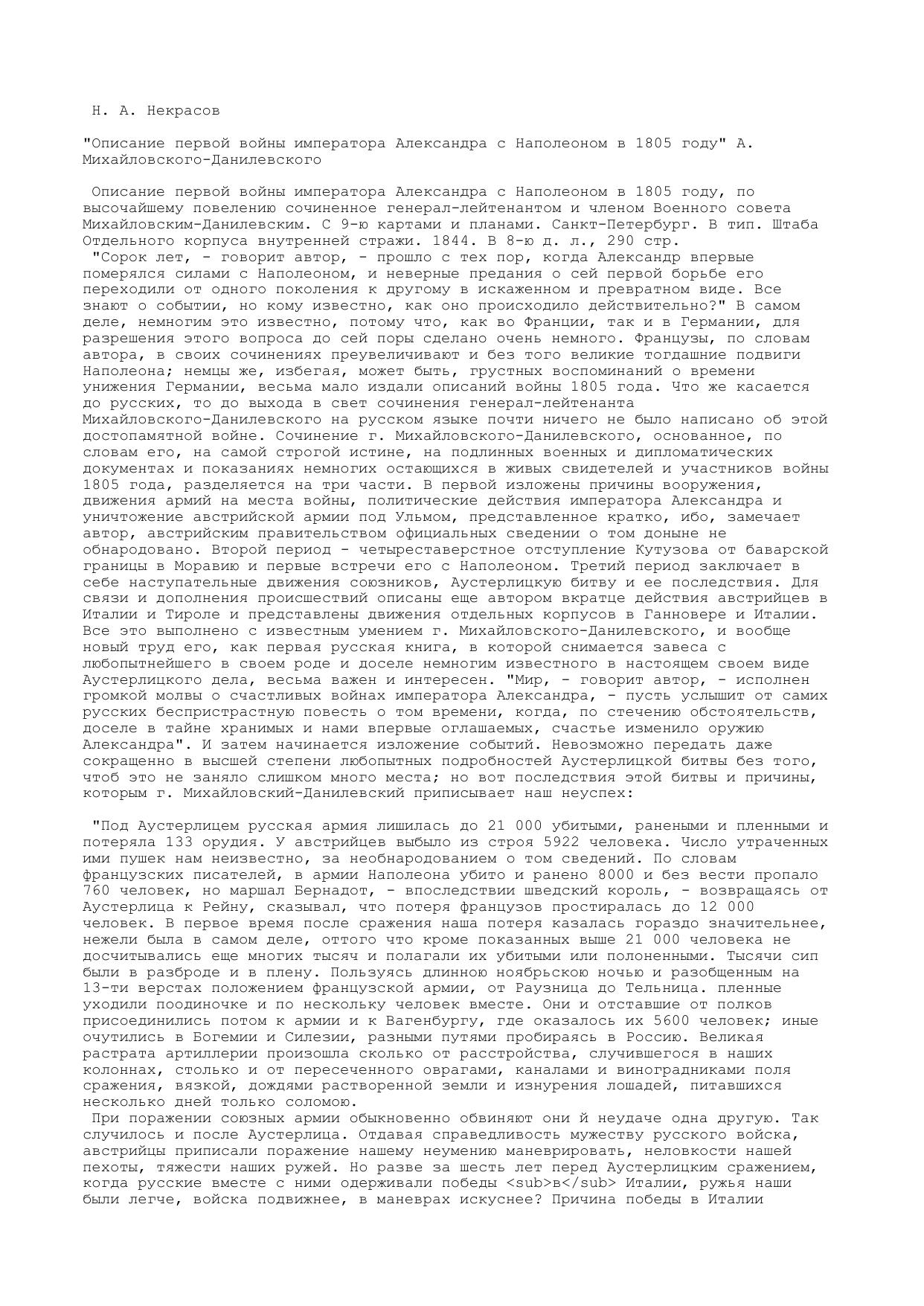 Описание первой войны императора Александра с Наполеоном в году А. Михайловского-Данилевского
