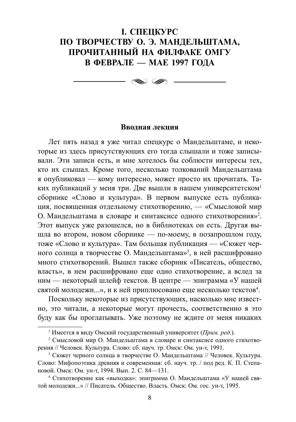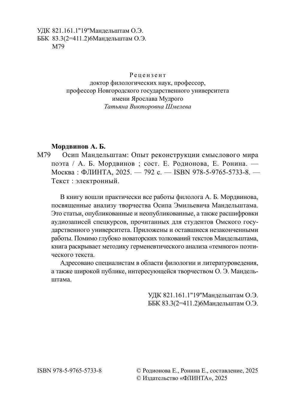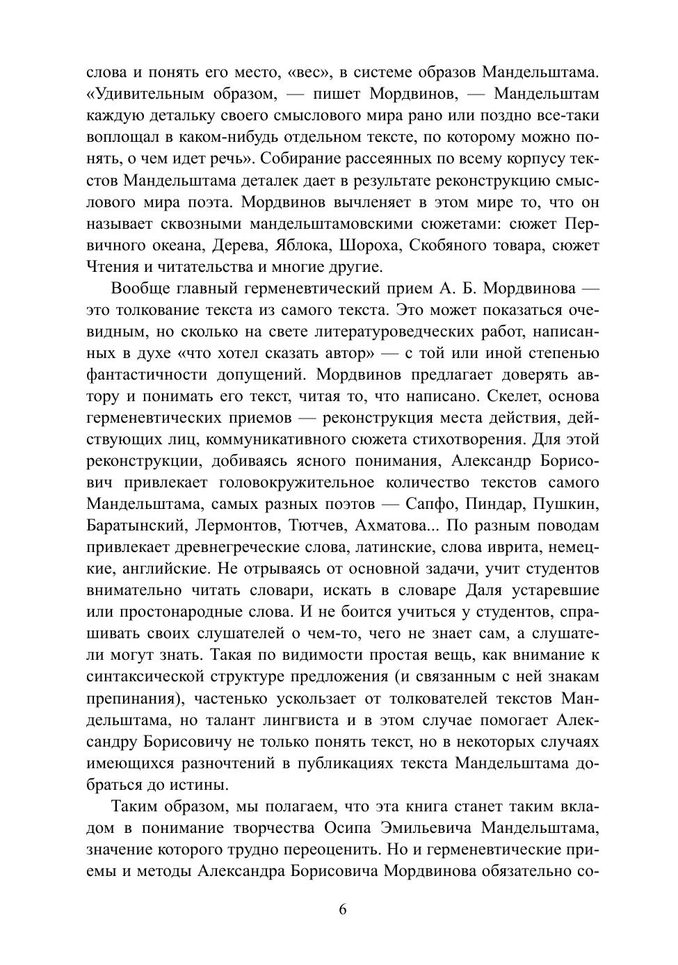 В книгу вошли практически все работы филолога А. Б. Мордвинова, посвященные анализу творчества Осипа Эмильевича Мандельштама. Это статьи, опубликованные и неопубликованные, а также расшифровки аудиозаписей спецкурсов, прочитанных для студентов Омского государственного университета. Приложены и оставшиеся незаконченными работы. Помимо глубоко новаторских толкований текстов Мандельштама, книга раскрывает методику герменевтического анализа «темного» поэтического текста. Адресовано специалистам в области филологии и литературоведения, а также широкой публике, интересующейся творчеством О. Э. Мандельштама.