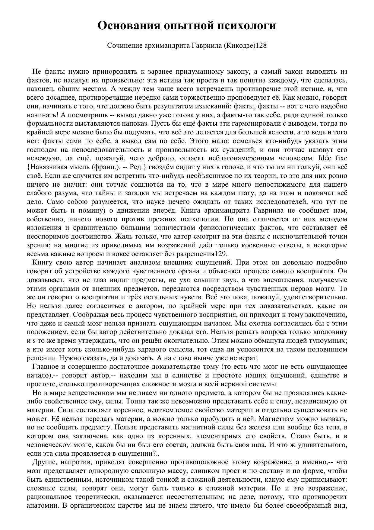 Основания опытной психологи. Сочинение архимандрита Гавриила (Кикодзе)