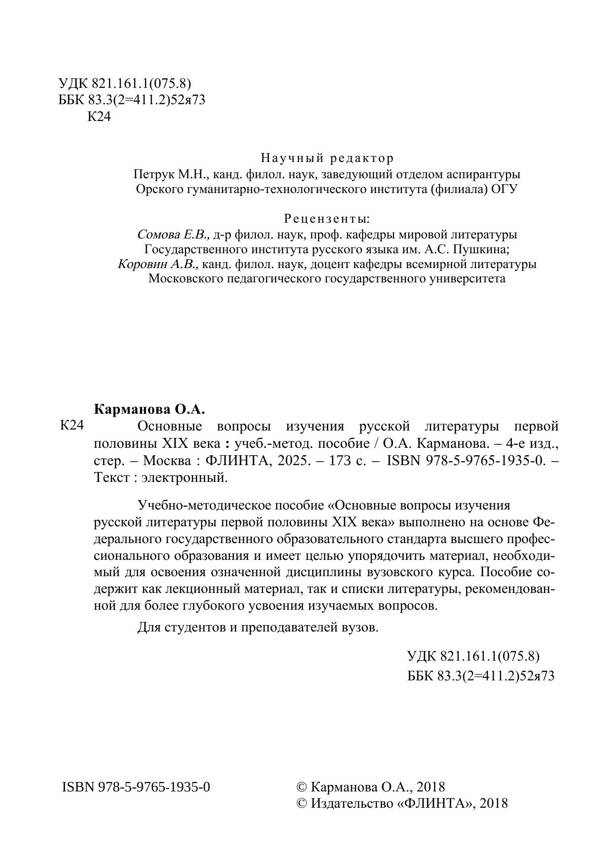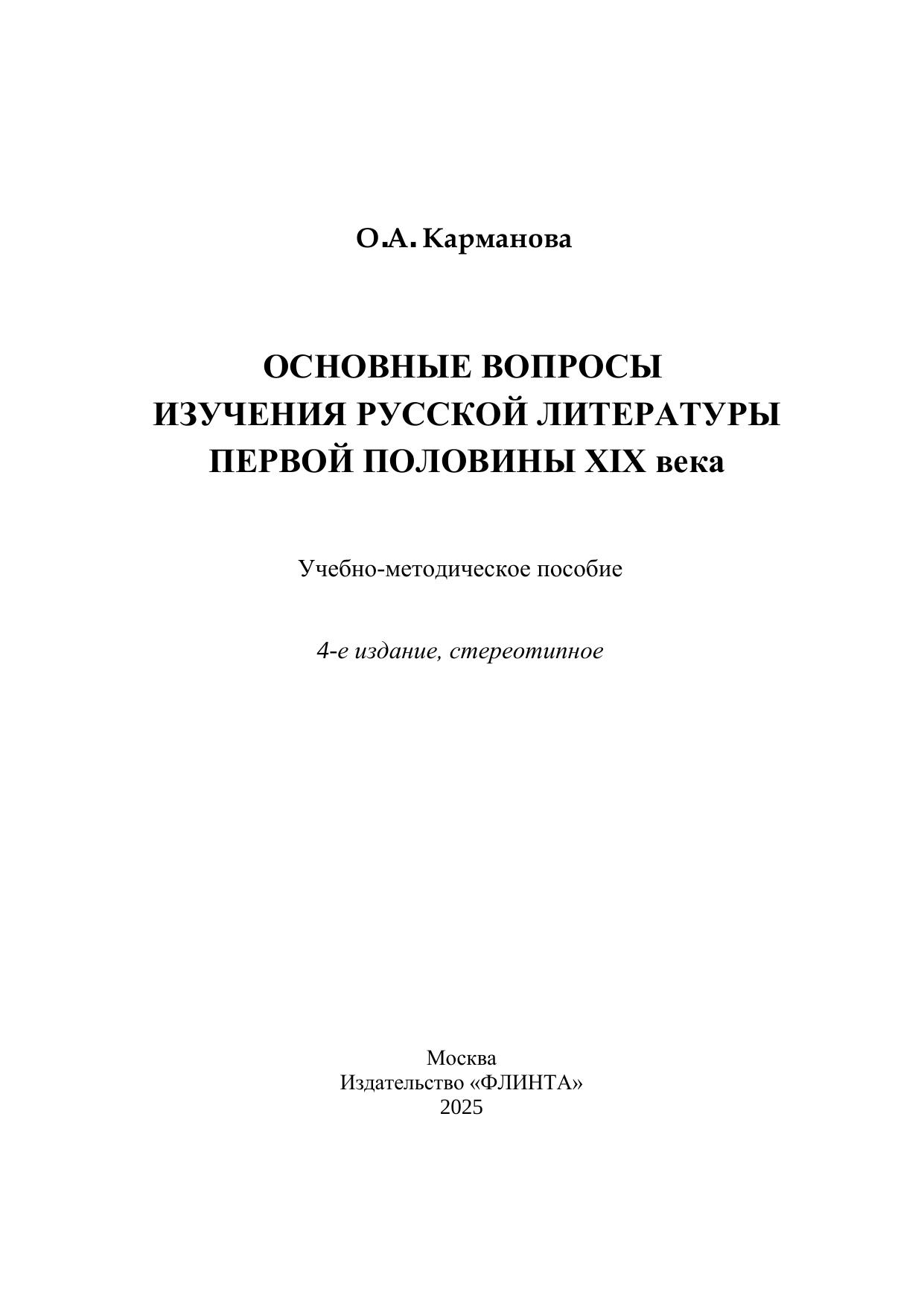 Основные вопросы изучения русской литературы первой половины XIX в.
