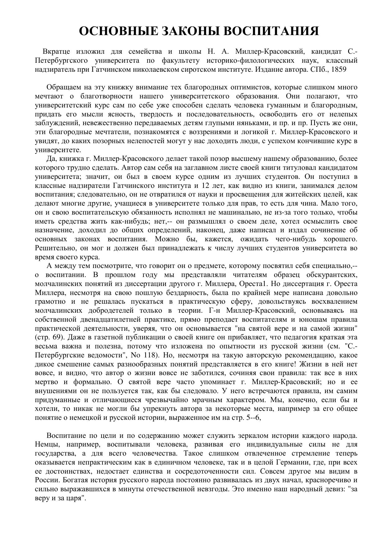 Основные законы воспитания... Н. А. Миллер-Красовский