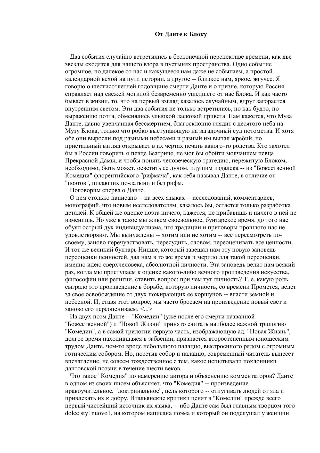 От Данте к Блоку