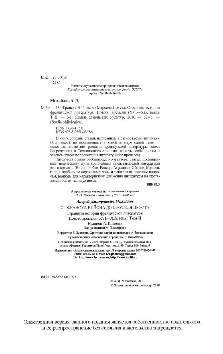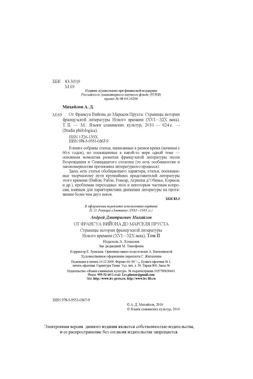 В книге собраны статьи, написанные в разное время (начиная с 60-х годов), но посвященные в какой-то мере одной теме —основным моментам развития французской литературы эпохи Возрождения и Семнадцатого столетия (то есть особенностям и закономерностям протекания литературного процесса). Здесь есть статьи обобщающего характера, статьи, посвященные творческому пути крупнейших представителей литературы этого времени (Вийон, Рабле, Ронсар, Агриппа д’Обинье, Корнель и др.), проблемам переходных эпох и некоторым частным вопросам, важным для характеристики движения литературы на протяжении более чем двух веков