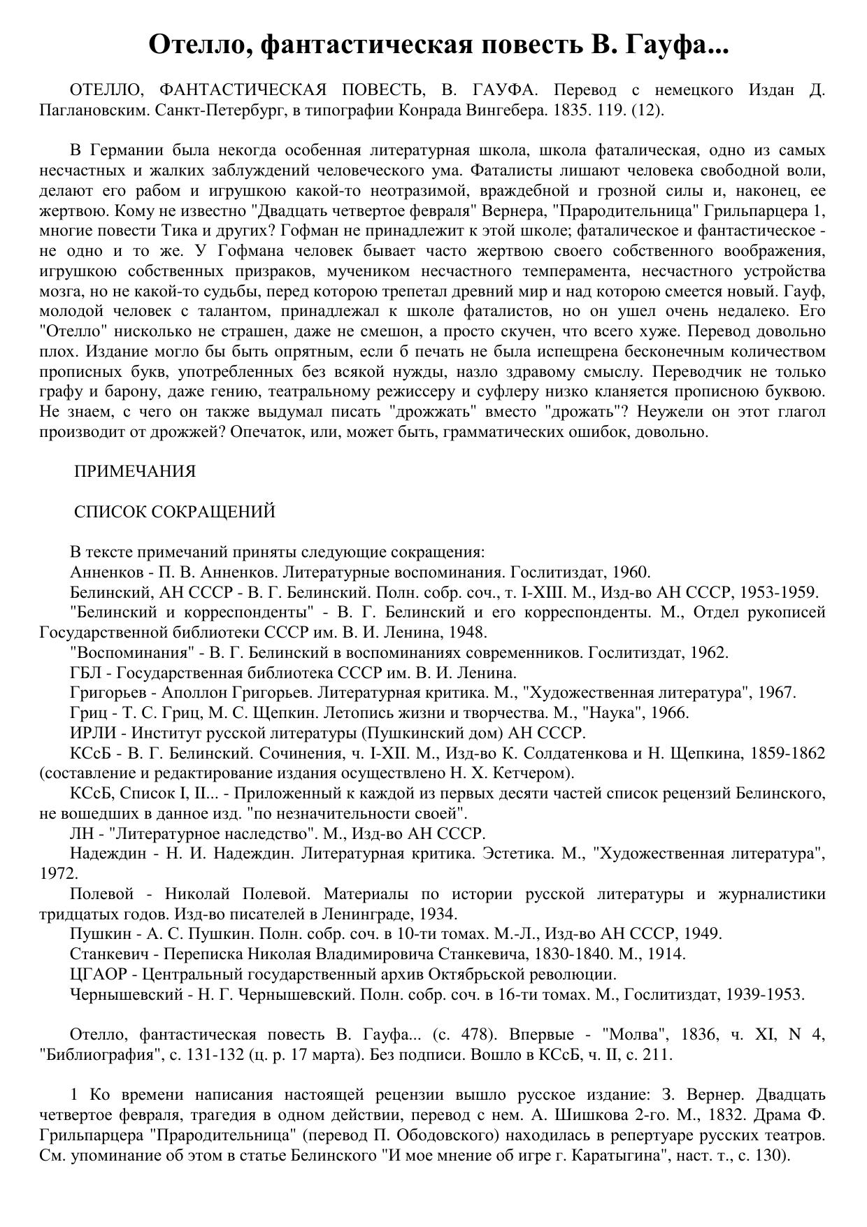 Отелло, фантастическая повесть В. Гауфа