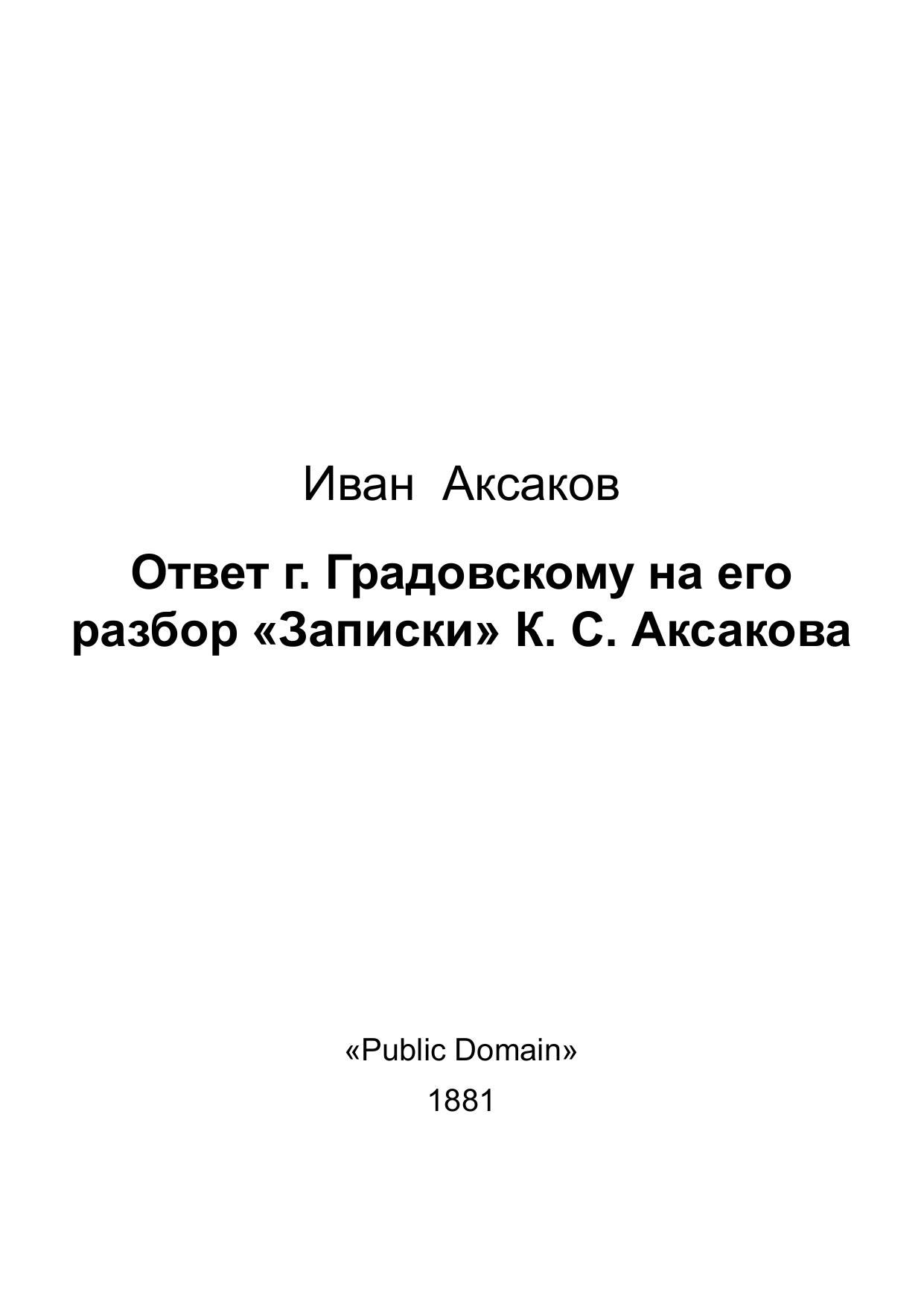 Ответ г. Градовскому на его разбор «Записки» К. С. Аксакова