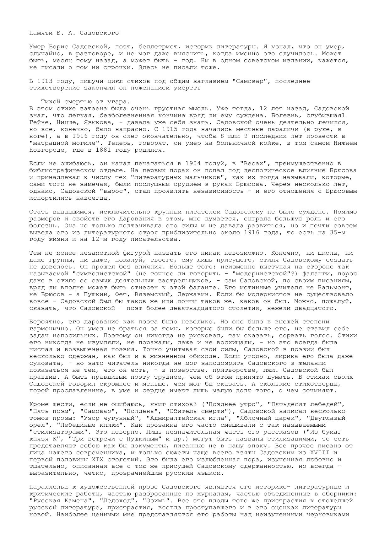 Памяти Б. А. Садовского