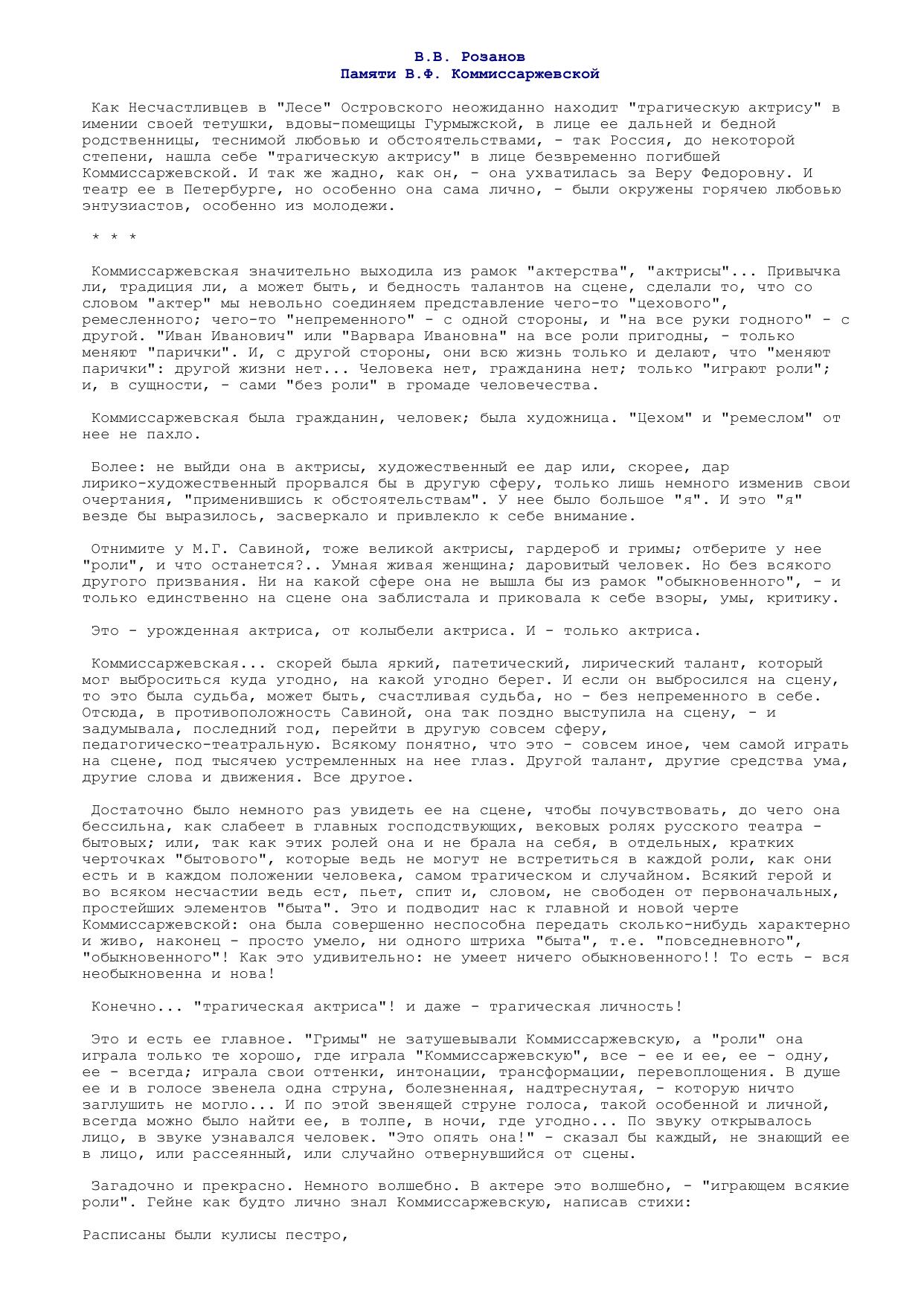 Памяти В.Ф.Комиссаржевской