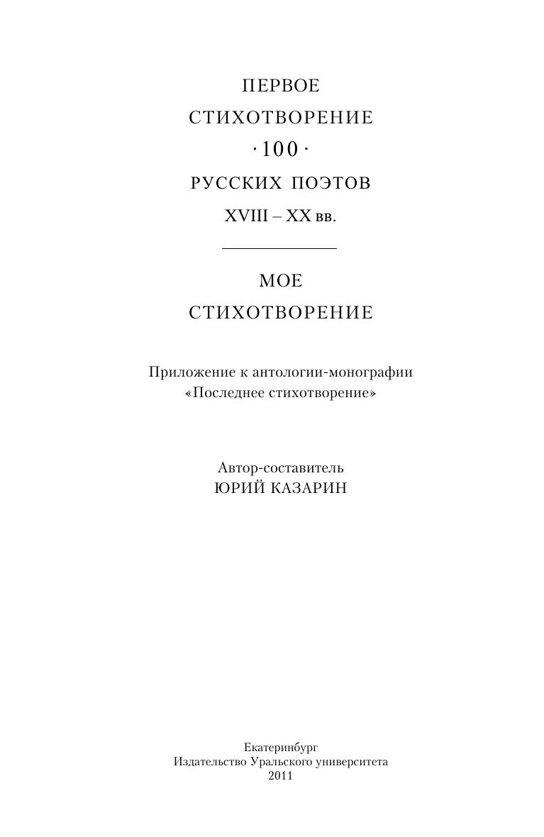 Первое стихотворение: 100 русских поэтов XVIII-XX вв. Мое стихотворение : прил. к антологии-монографии «Последнее стихотворение»